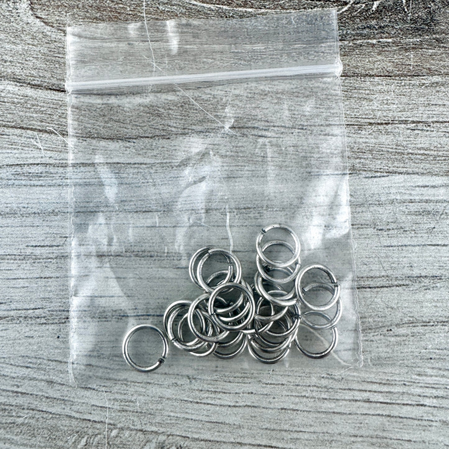 These jump rings are great for your jewelry needs. Solid Brass with pewter finish. These go great with Carson's Cove antiqued pewter and antiqued silver components. Made in America.