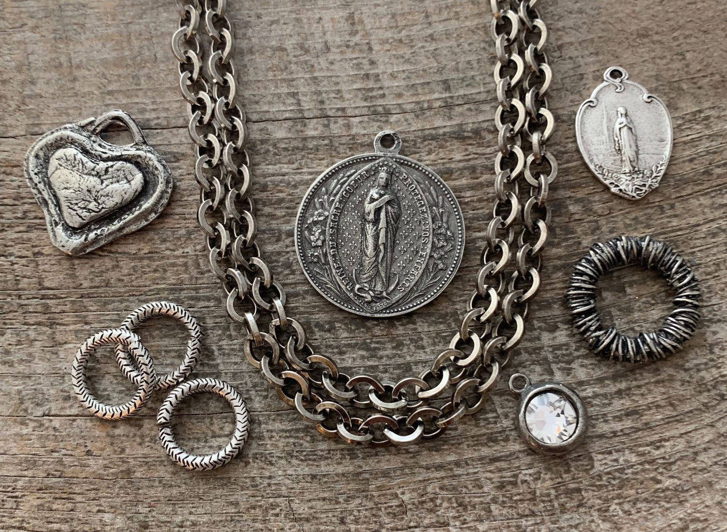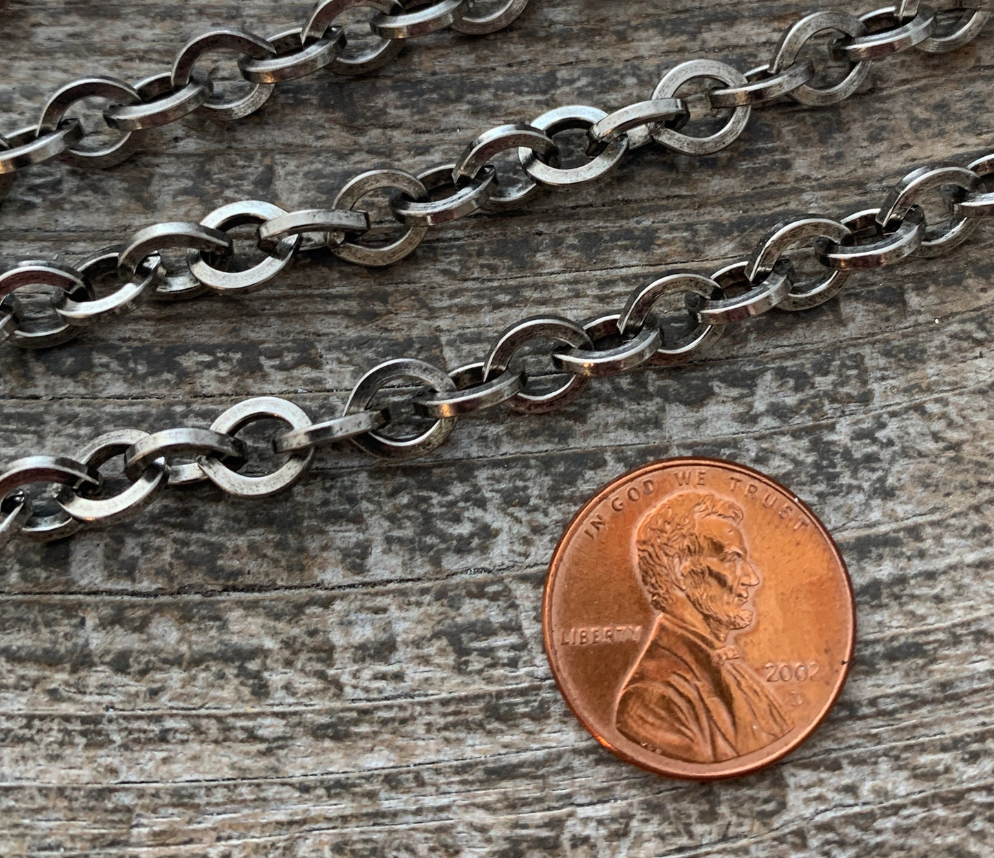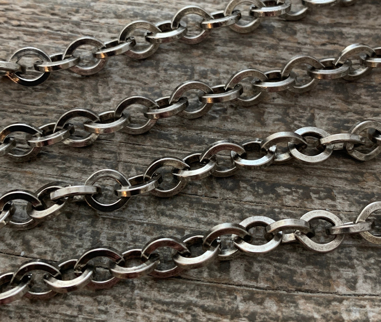 CC pewter components are made of high-quality pewter that is free of lead and cadmium. Most CC chain is made of regular steel, and some is made of brass. It is then plated with the various CC finishes. CC plating is known to hold up very well over time, but as always with any plated items, we recommend keeping it away from water and perfume.