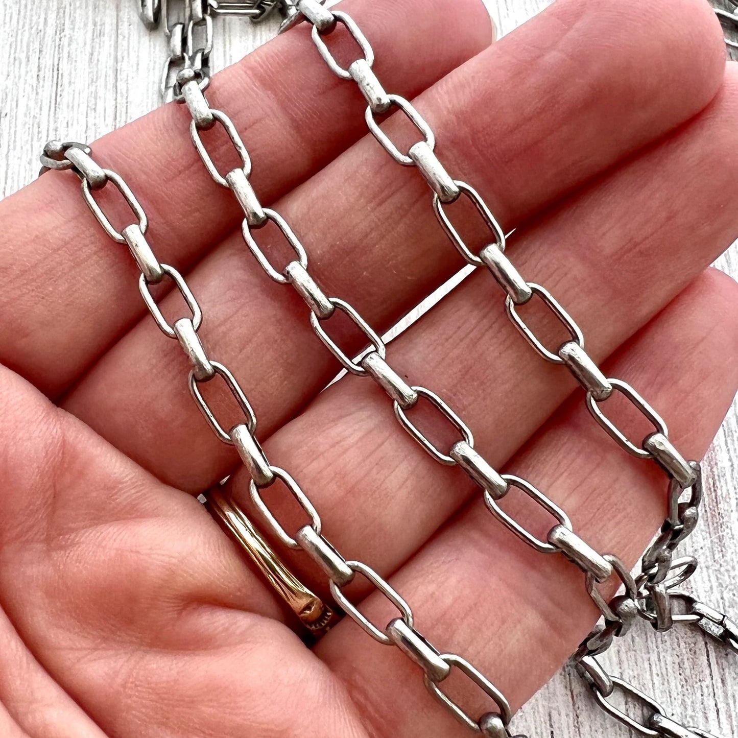 Clip Chain, Silver Alternating Links, Chain by the Foot, Oval Cable, Jewelry Supplies, PW-2039
