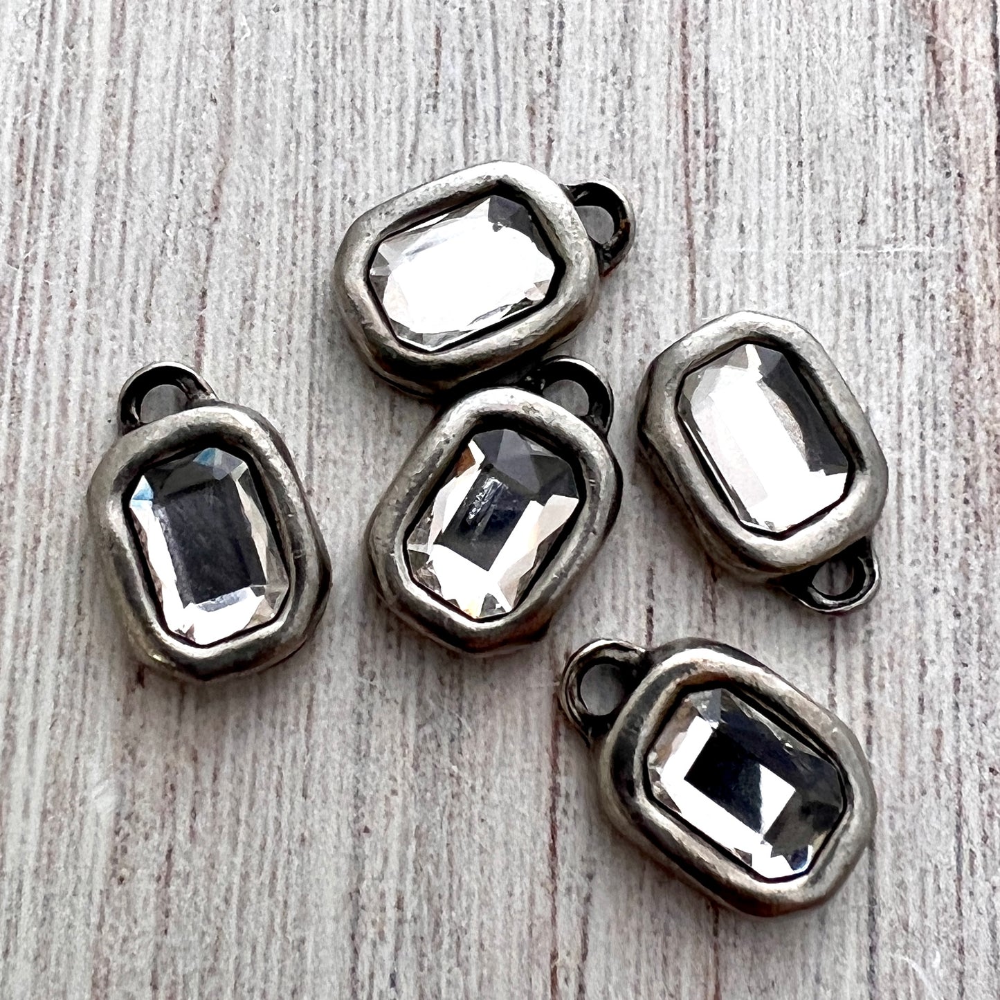 Add a little pop of sparkle to your creations! This little emerald cut (rectangle) rhinestone charm is quite adorable. Pair it with a simple chain for a minimalist look, or add it to earrings or a charm bracelet.