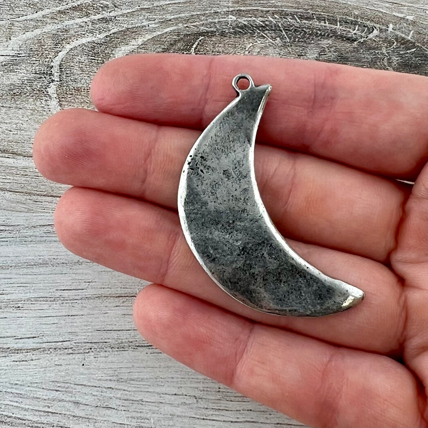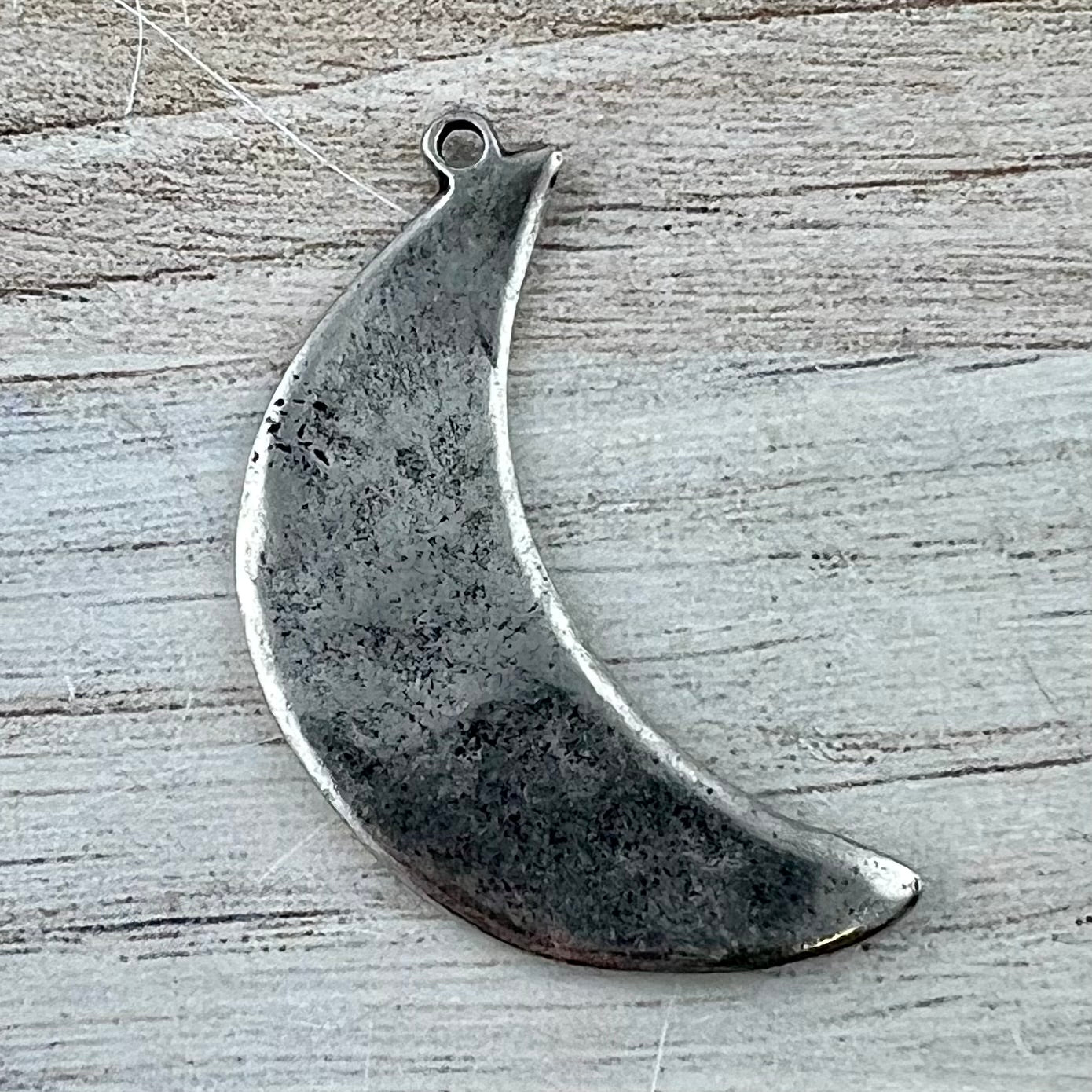 Discover the celestial allure of our artisan-crafted wavy crescent moon pendant. Versatile and captivating, this piece will add a little magic to your jewelry creations. Perfect for necklaces, bracelets, or earrings.