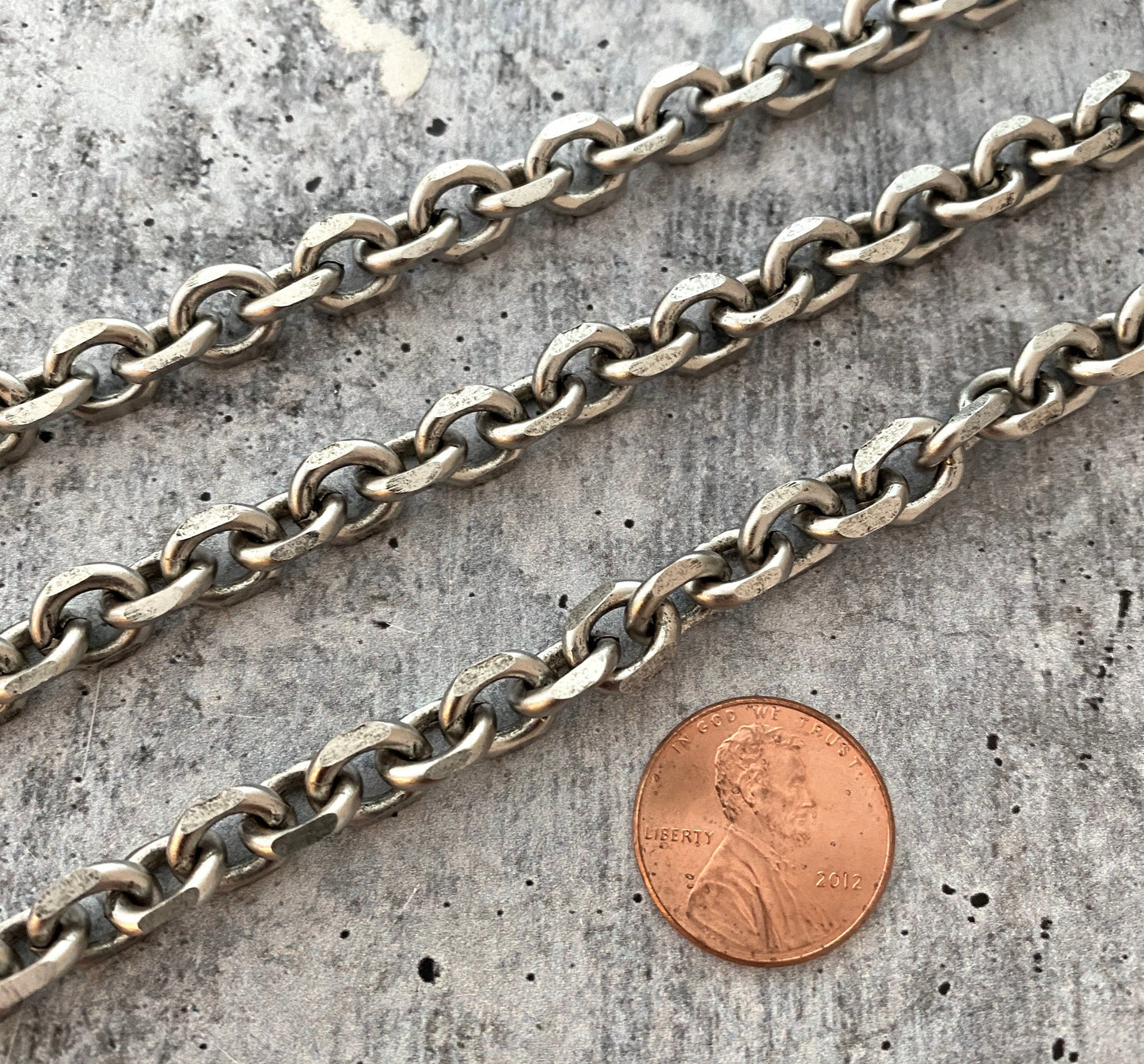 This vintage chain is chunky and beautiful! It makes a beautiful statement. The links are unsoldered, but extremely sturdy.