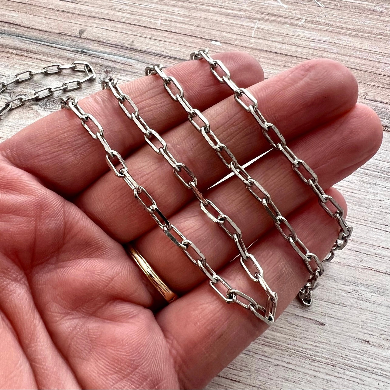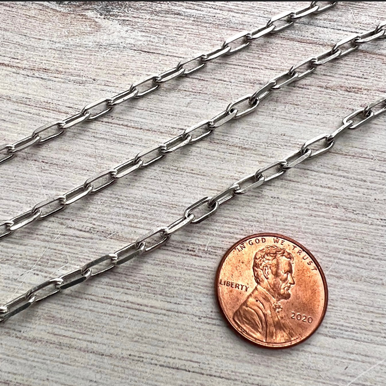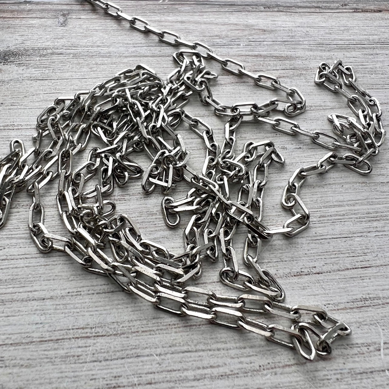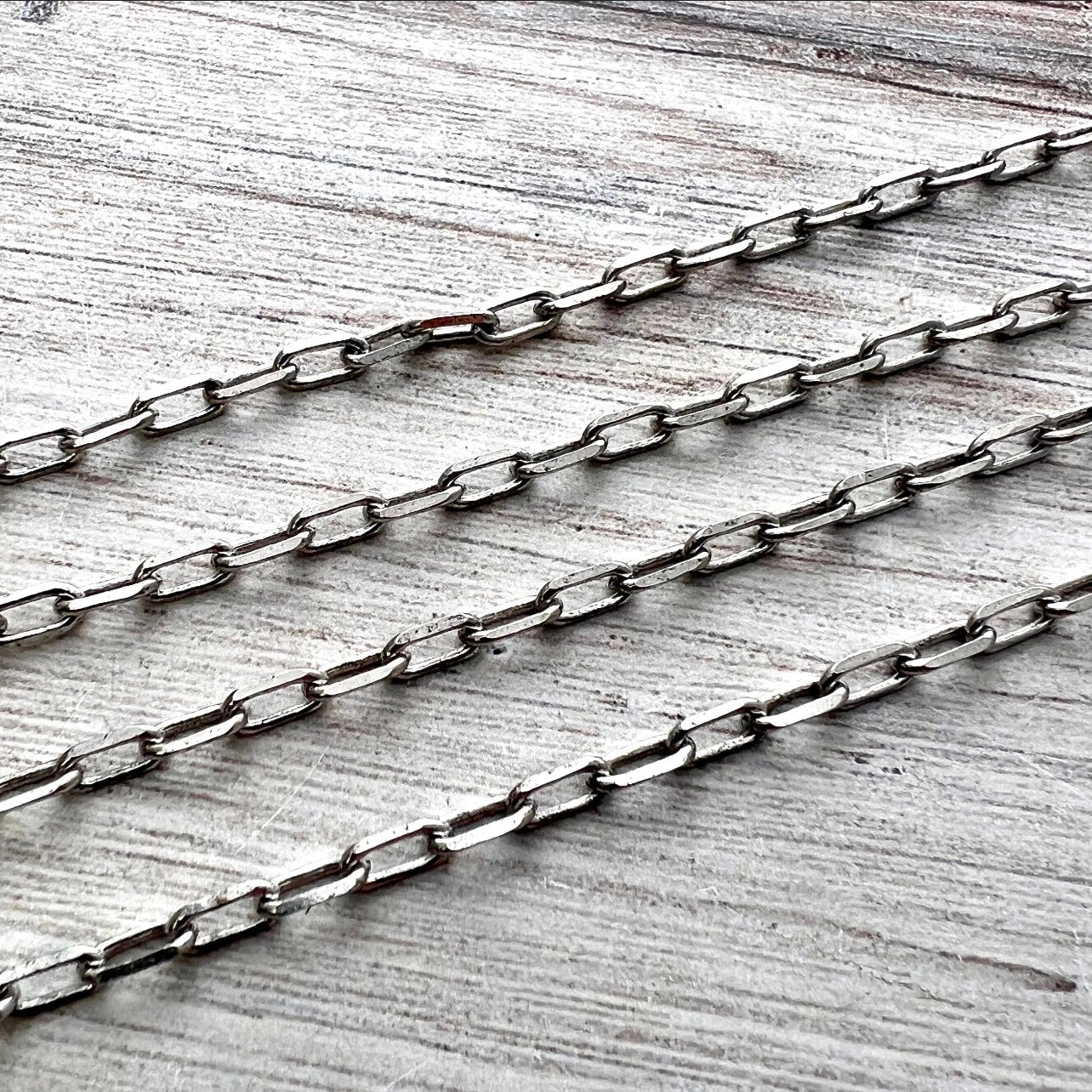 This simple clip chain is lightweight, yet sturdy. It has soldered links to make it stronger, so the links will have to be cut when using it to make jewelry. This chain is excellent for minimalist necklaces holding small charms. This is sold by the foot, but we ship in one continuous length unless requested otherwise.