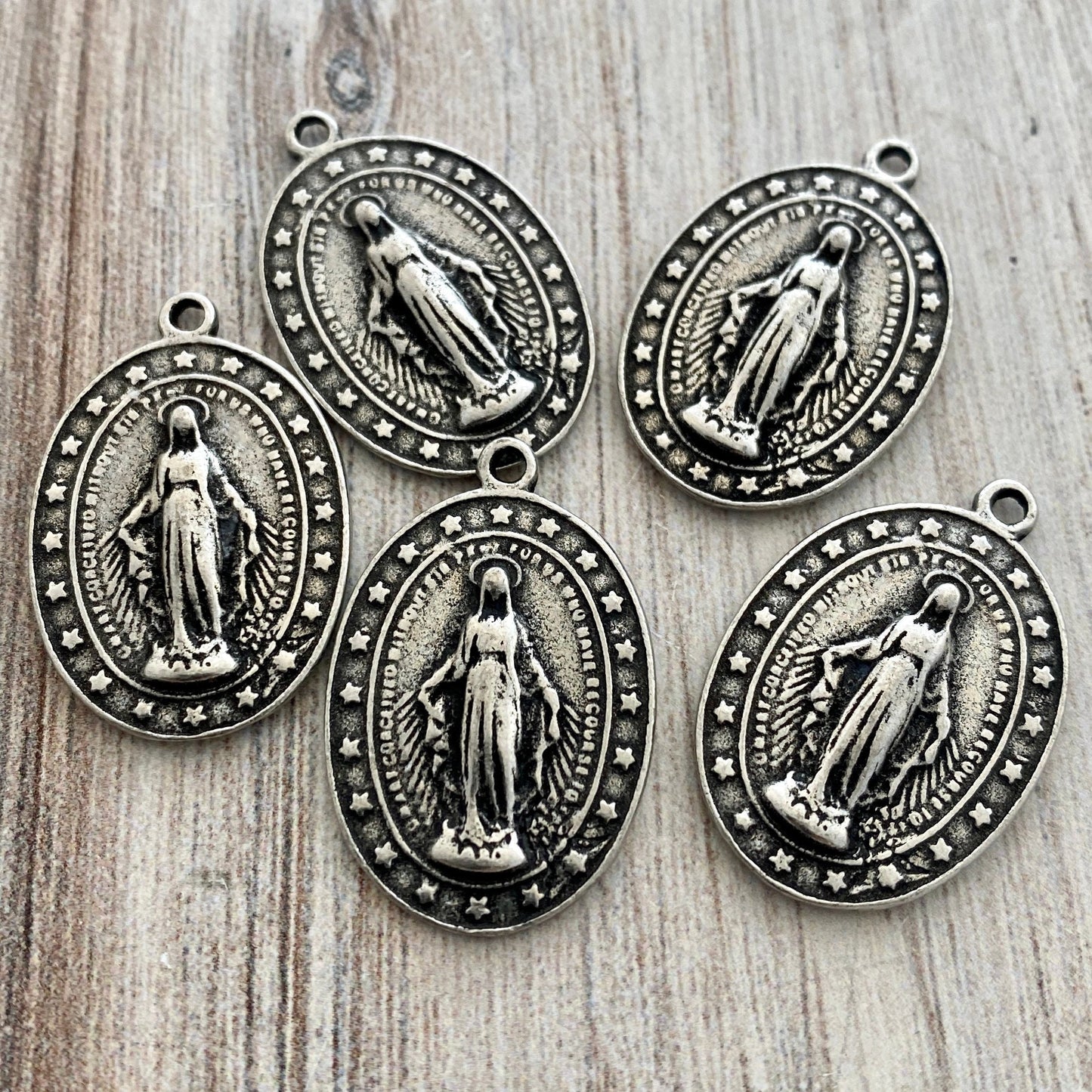 What a unique and lovely medal this is. This oval of the Virgin Mary, is surrounded by stars. The size and weight of this works for all types of jewelry.