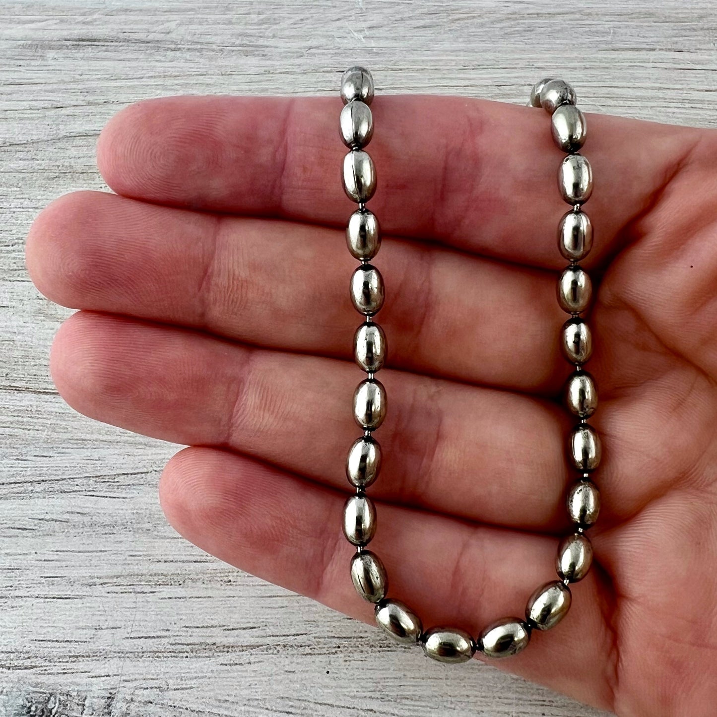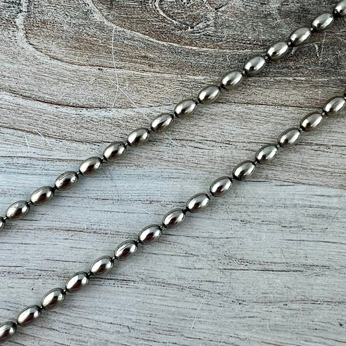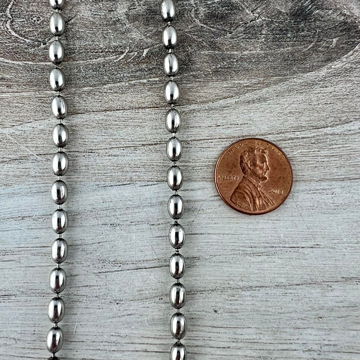 This silver oval ball chain is the perfect base for creating chic and stylish necklaces. Its smooth, round beads feel excellent, and it's so easy to add pendants or charms for a quick creation.