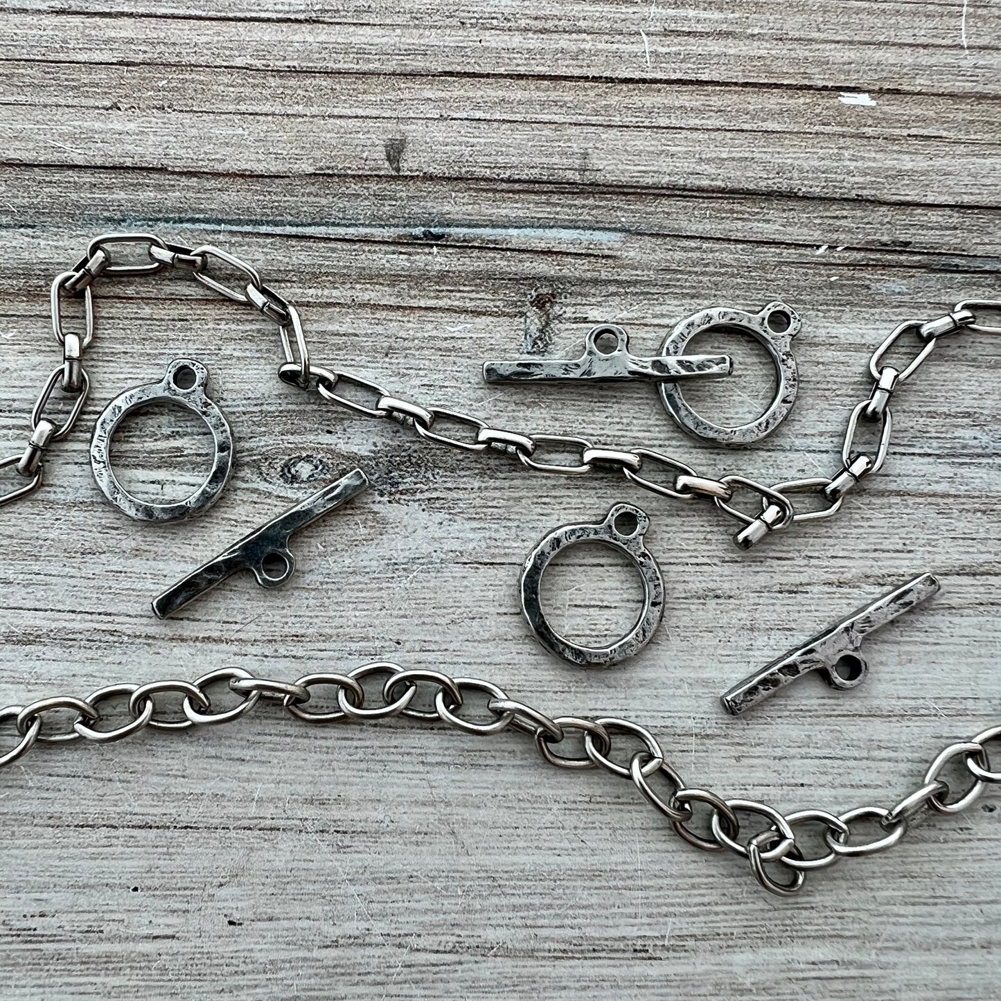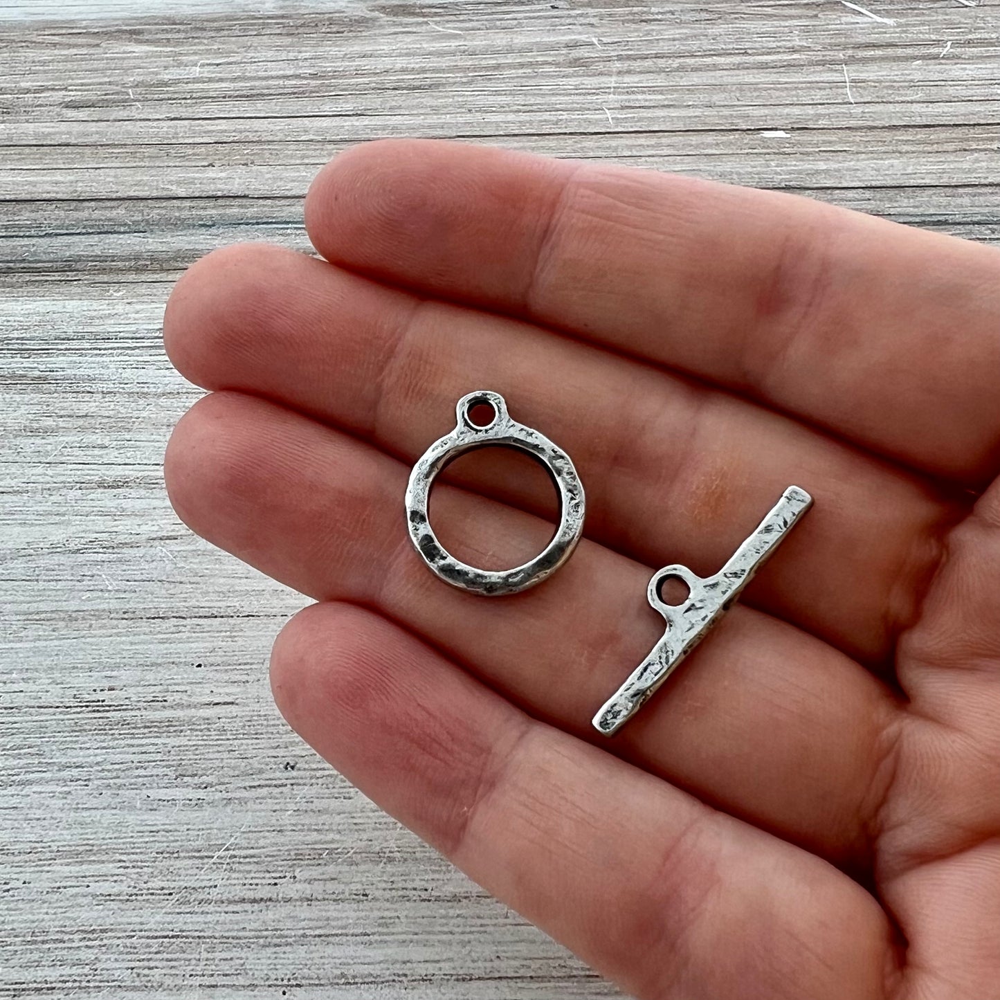 This toggle set brings a subtle, artisan detail to necklaces and bracelets. Its medium size makes it versatile for any jewelry creation.