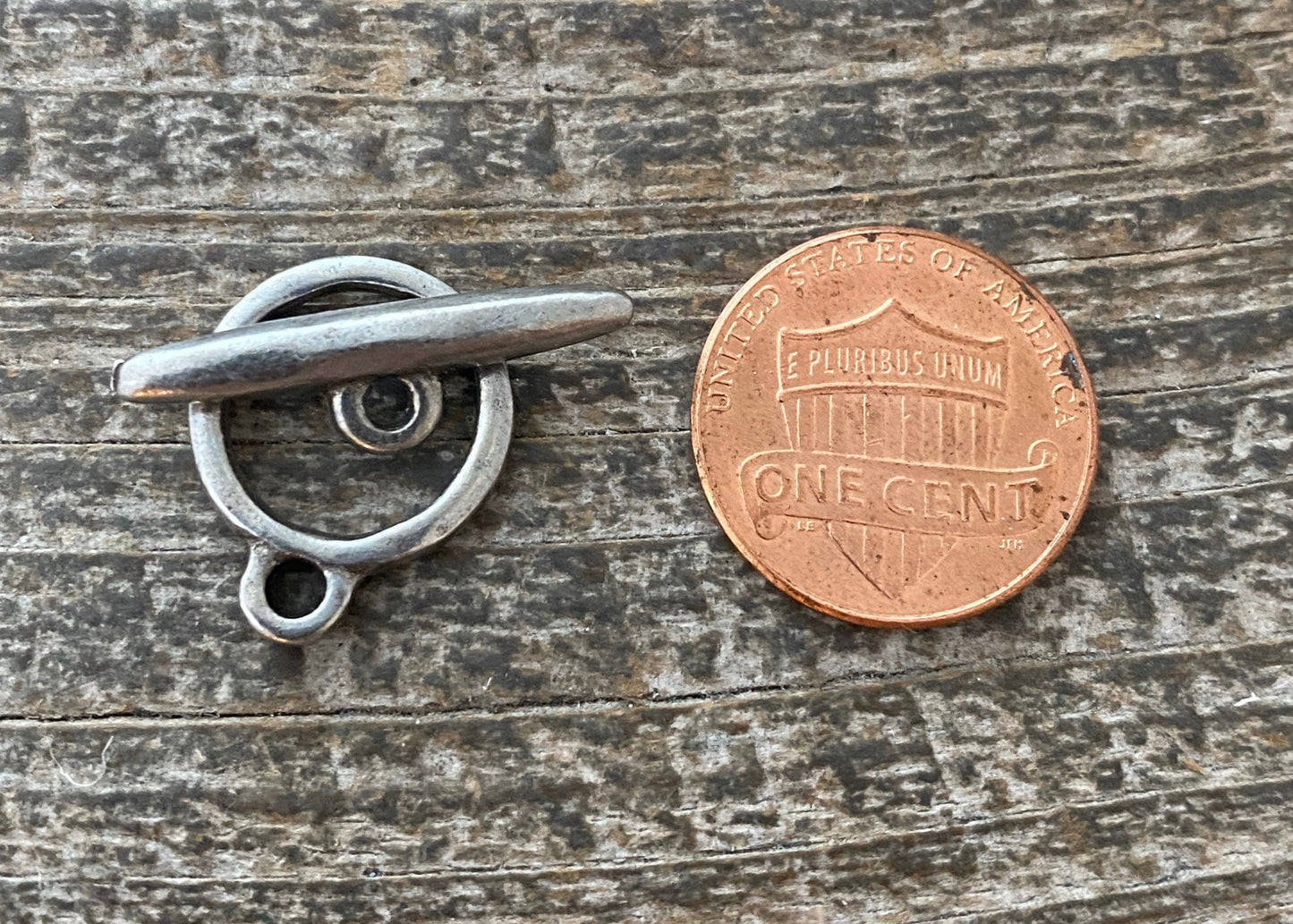 Smooth Toggle Clasp, Antiqued Silver Closure, Artisan Necklace Bracelet Components Findings, PW-6110