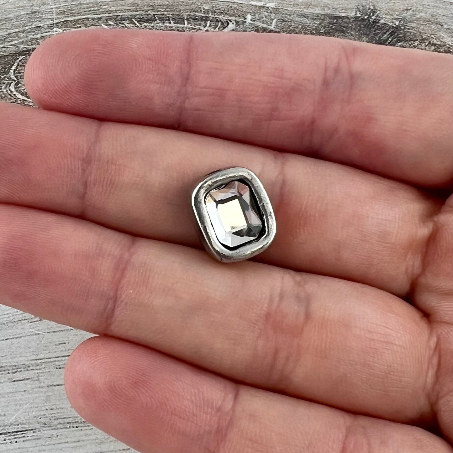 Add Bead, Crystal Clear Emerald Cut Rhinestone Bead, Small Rectangle Antiqued Pewter, Jewelry Making Artisan Findings, PW-S042 to the cart