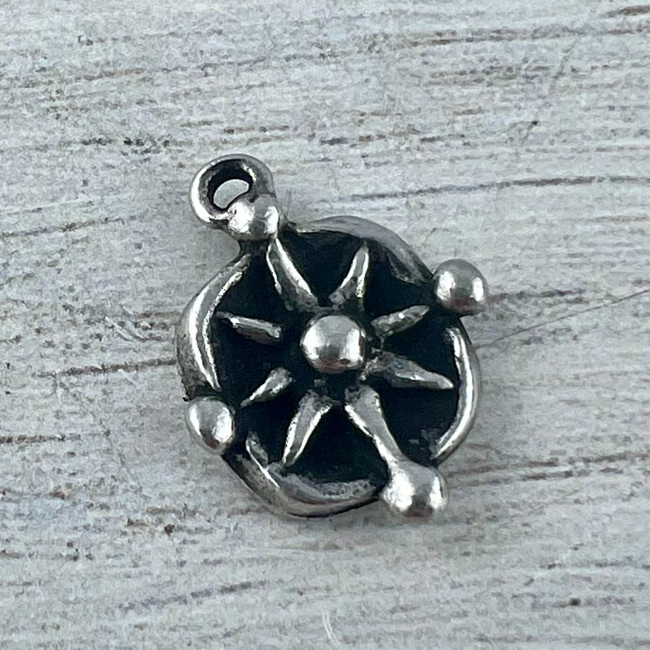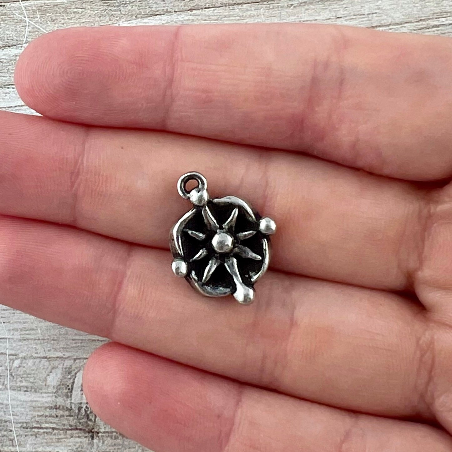 Dotted Compass Charm, Antiqued Pewter Star, Jewelry Findings, PW-6298