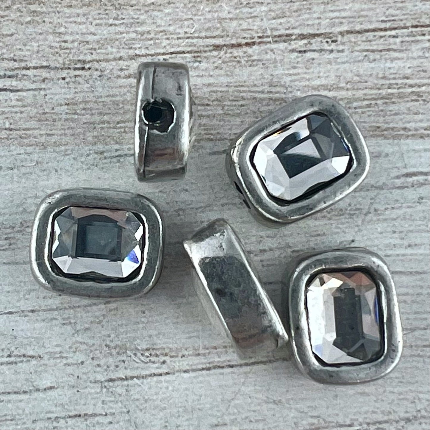Bead, Crystal Clear Emerald Cut Rhinestone Bead, Small Rectangle Antiqued Pewter, Jewelry Making Artisan Findings, PW-S042