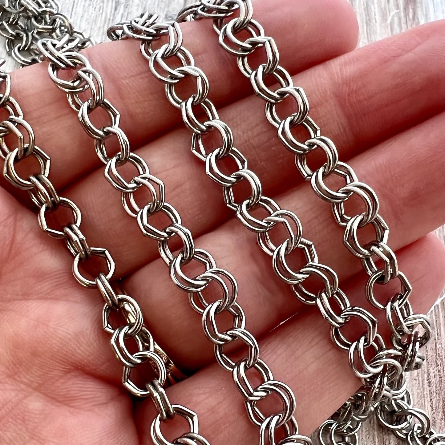 Cable Chain Silver, Double Circle Links, Bulk Chain By Foot, Jewelry Making, PW-2040