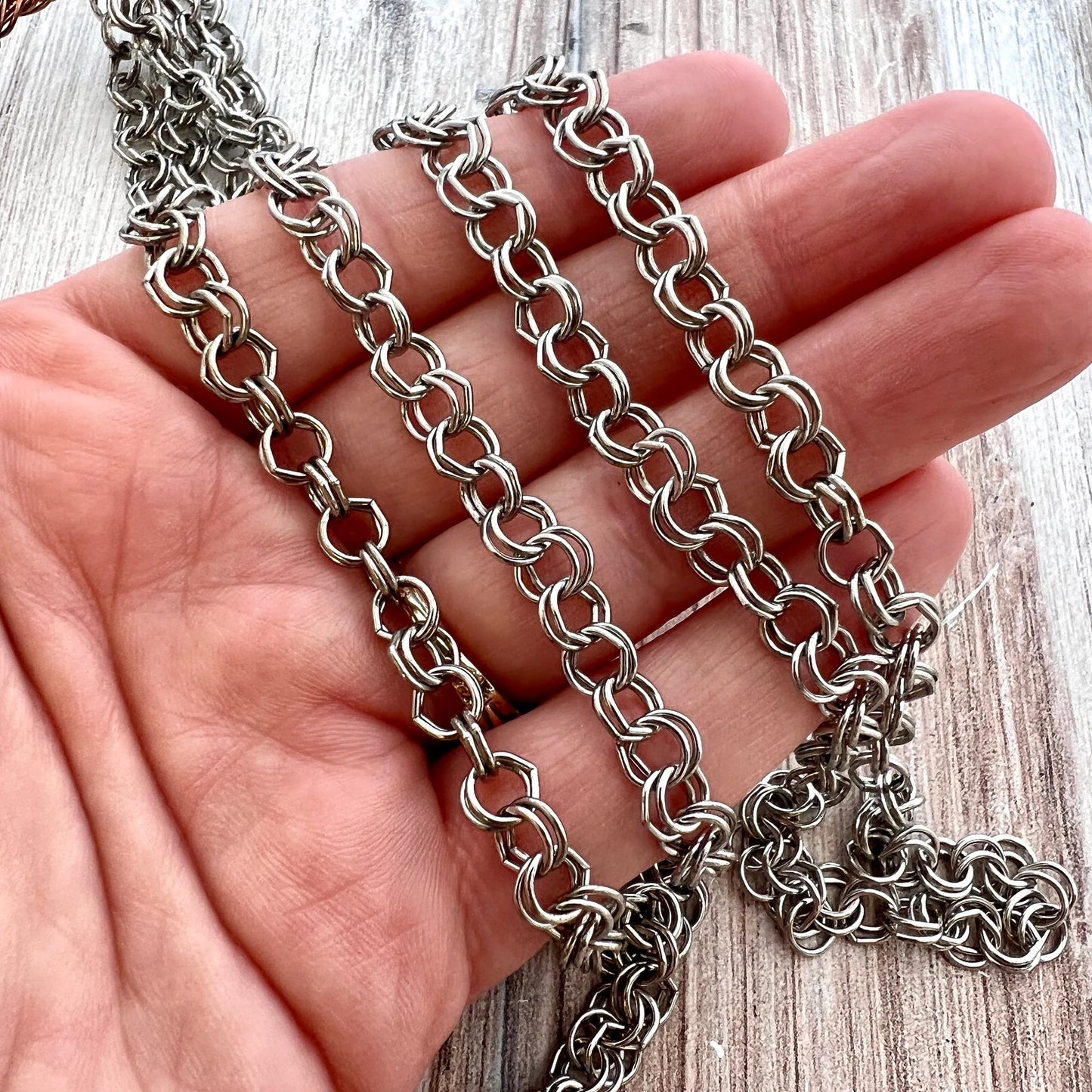 Add Cable Chain Silver, Double Circle Links, Bulk Chain By Foot, Jewelry Making, PW-2040 to the cart