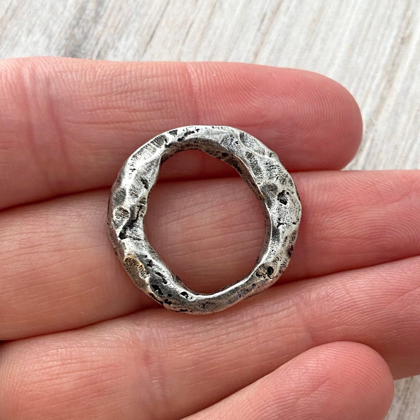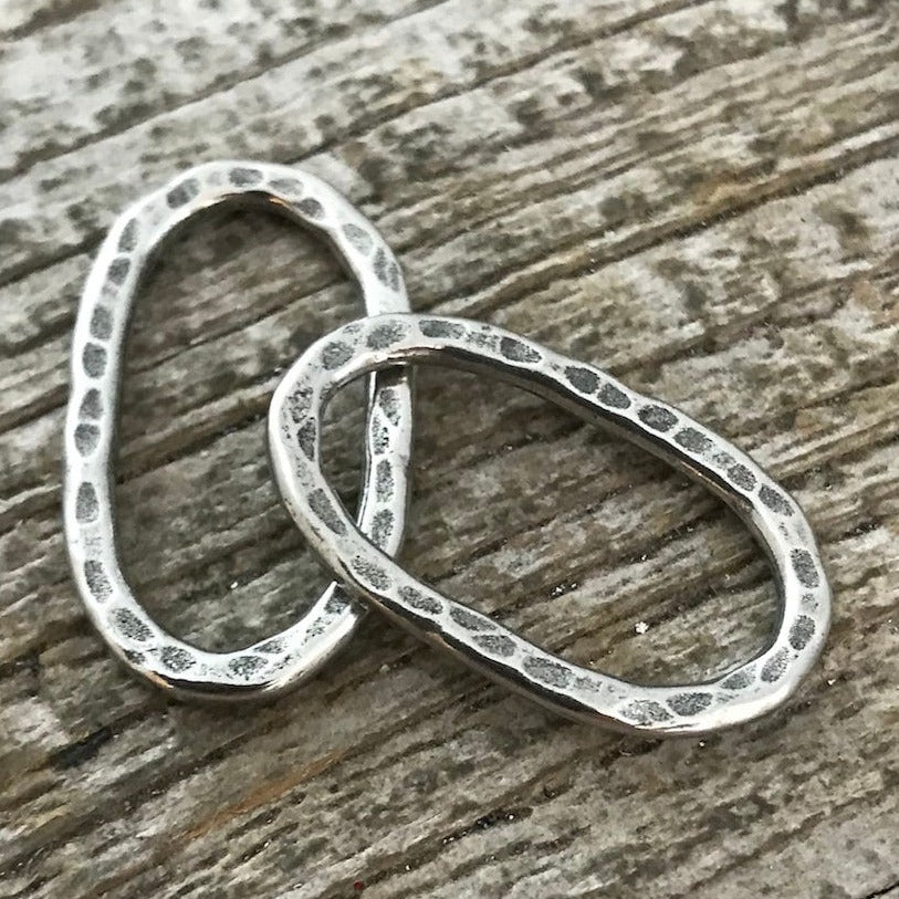 Organic Hammered Ring Link, Eternity Connector, Antiqued Pewter Oval Hoop, Circle Jewelry Supply, PW-6127