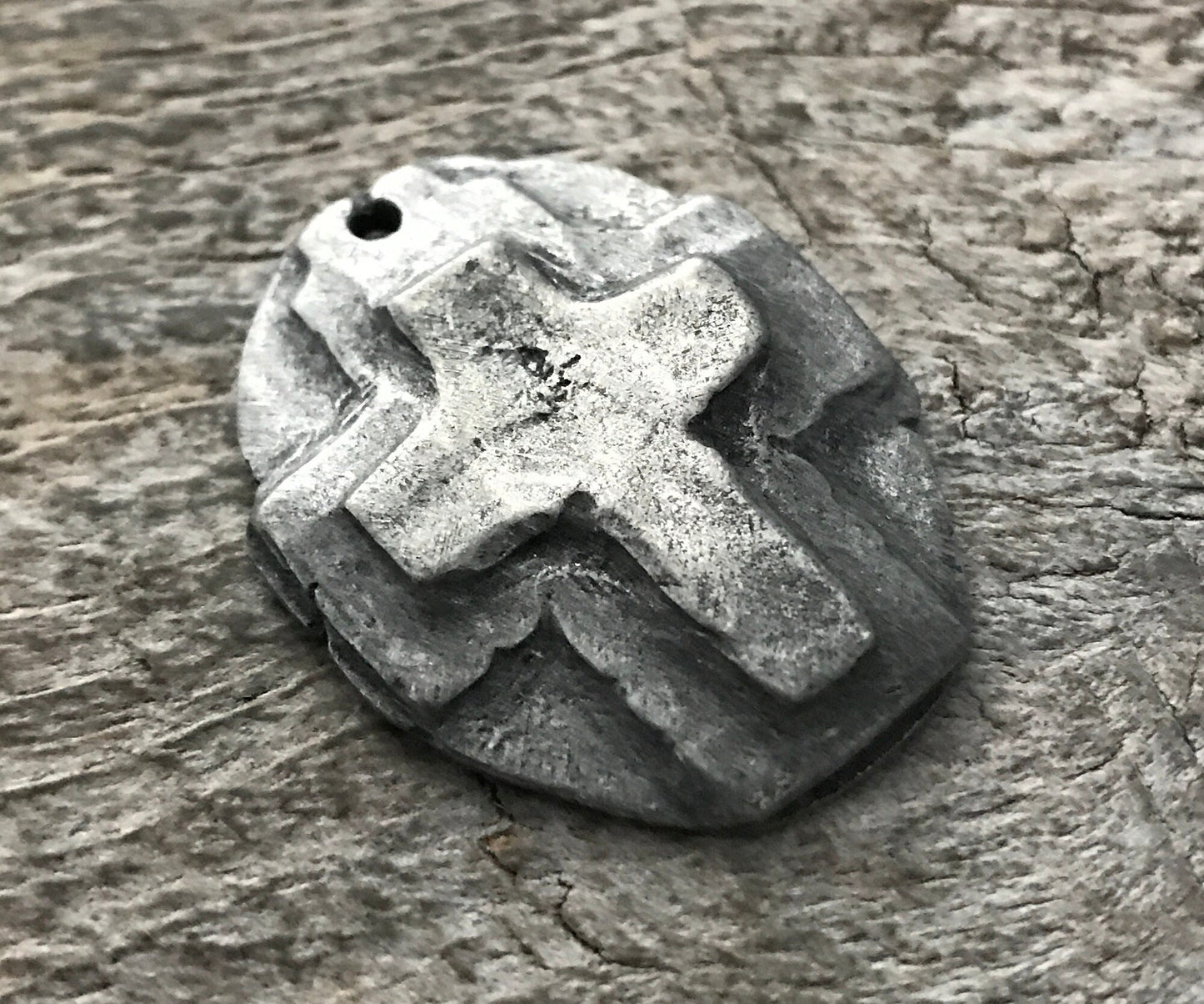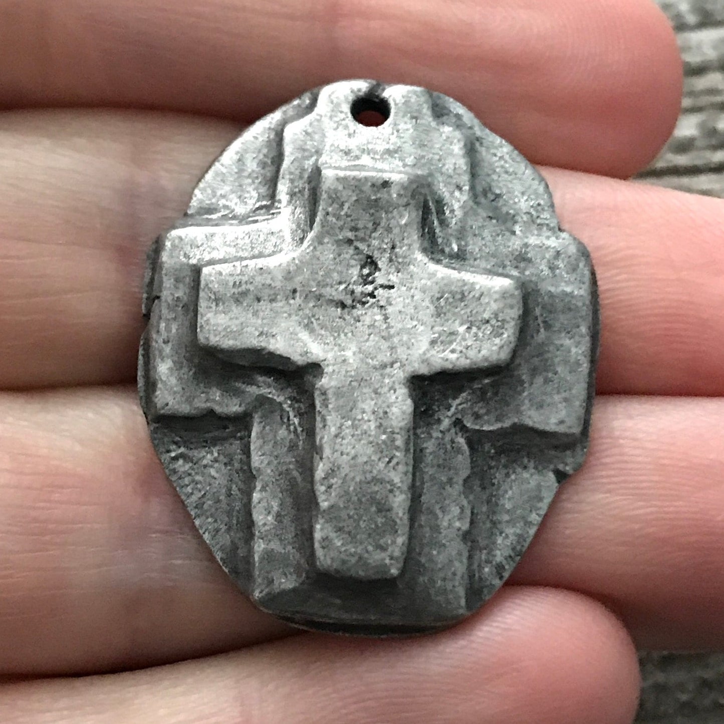 Hammered Artisan Oval Cross Pendant, Antiqued Silver Cross, Leather Pendant, Religious Jewelry, Cross Charm, PW-6080