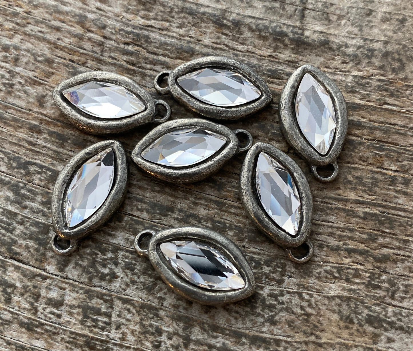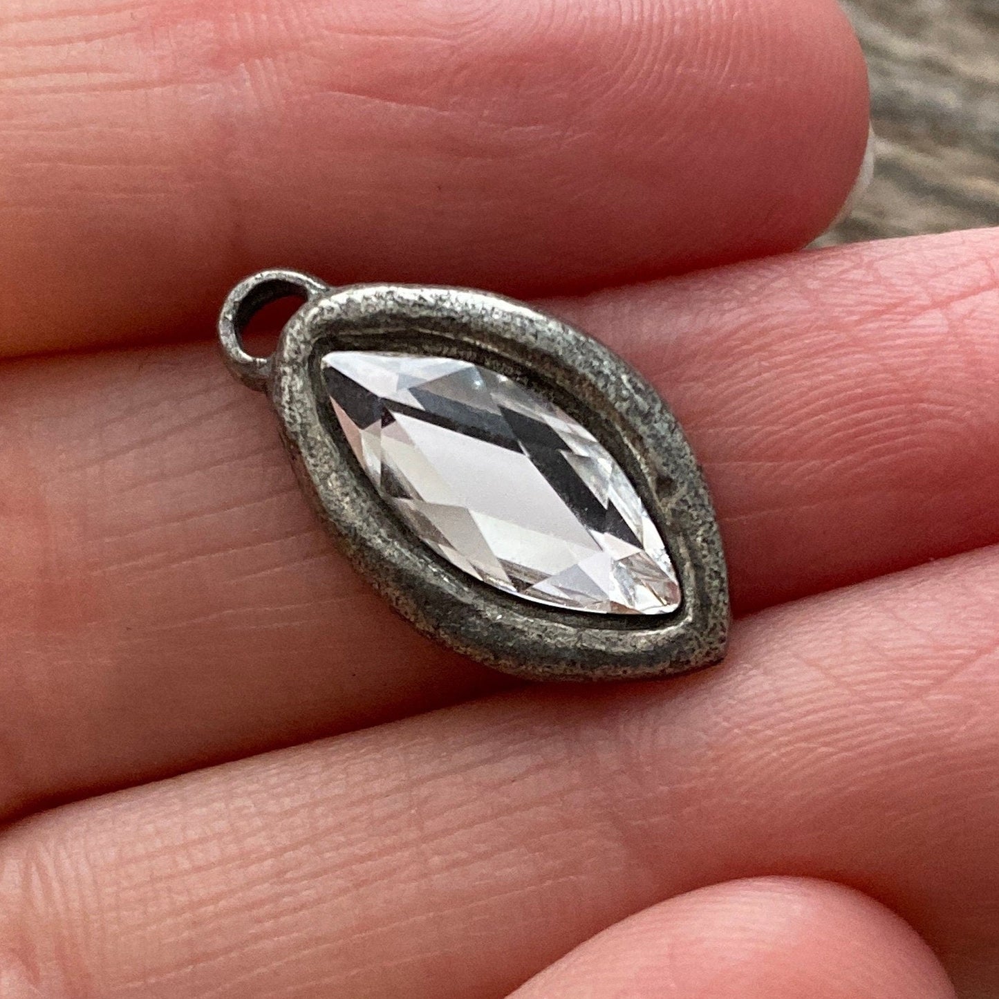 Add Swarovski Crystal Clear Navette Charm, Antiqued Silver Rhinestone Pendant, Jewelry Making Artisan Findings, PW-S005 to the cart