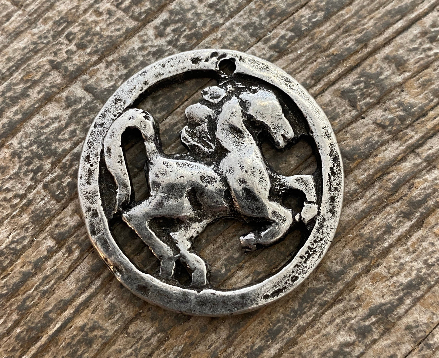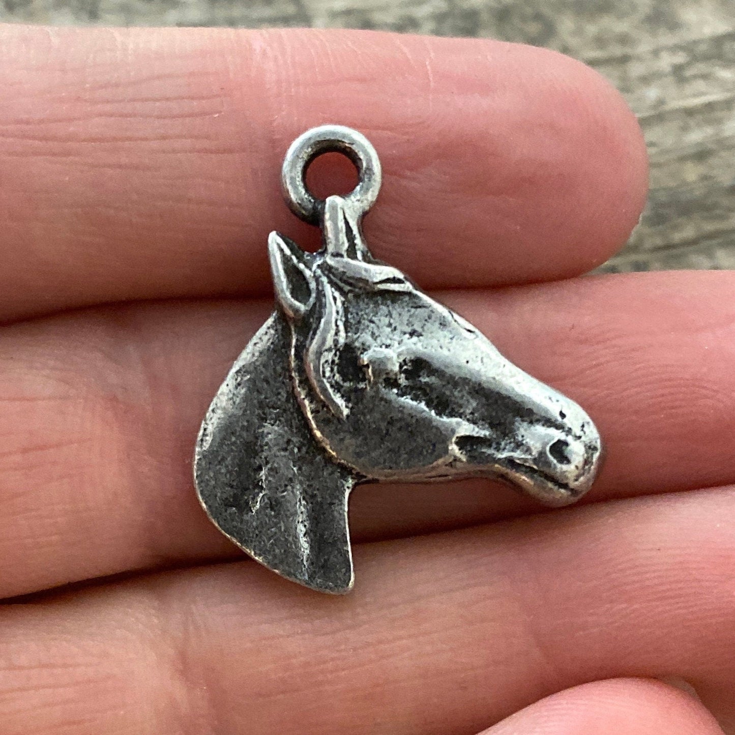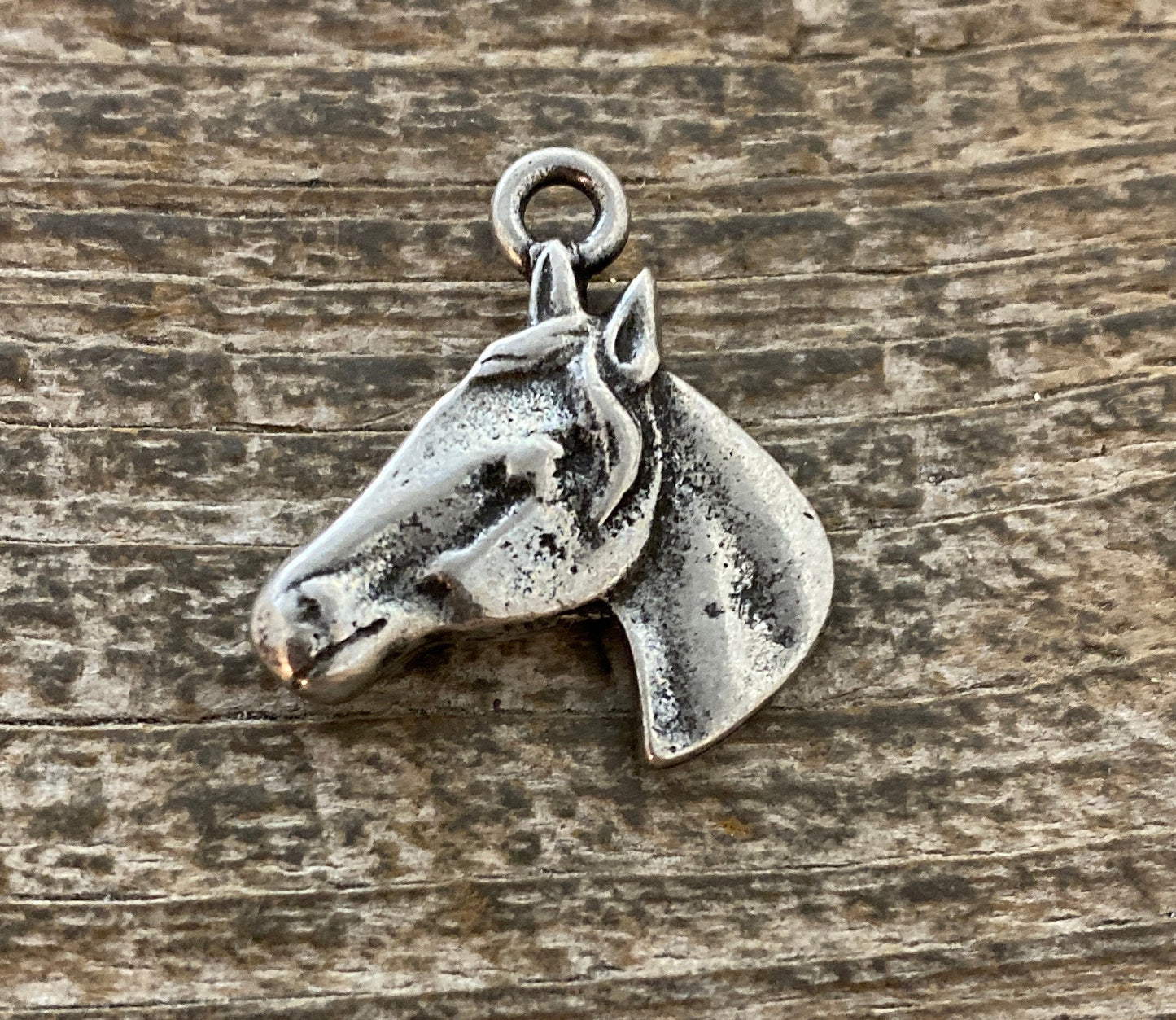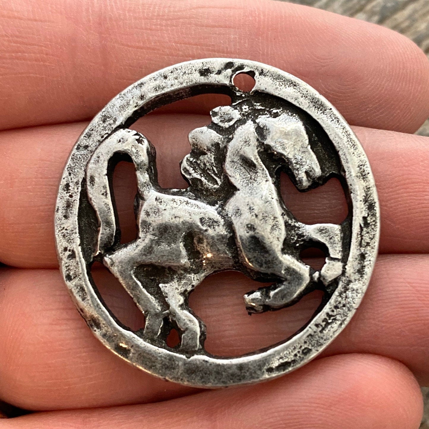 Large Artisan Horse Pendant, Antiqued Silver Equestrian Charm, Jewelry Making, PW-6105