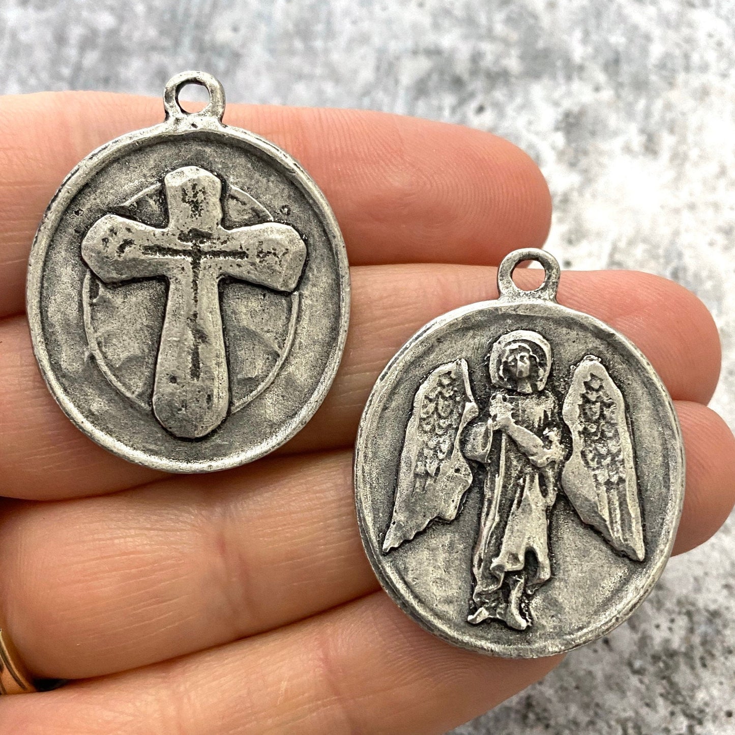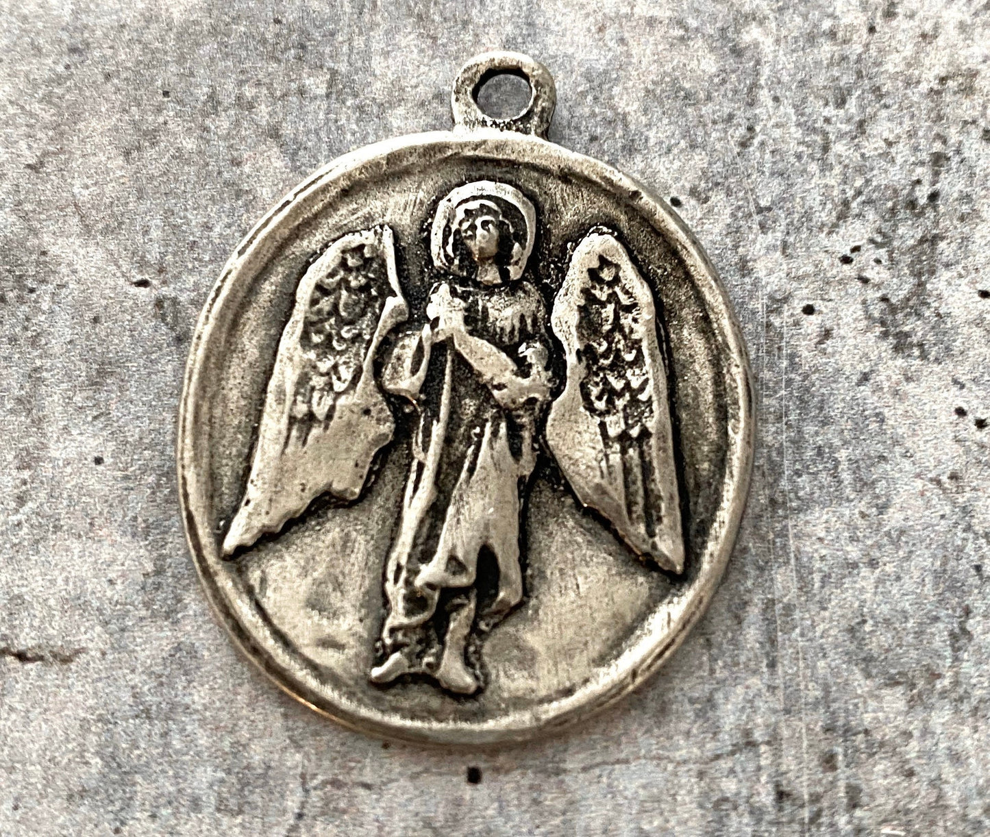 Archangel St. Raphael, Catholic Medal, Angel of Healing, Antiqued Silver Religious Pendant Charm, Protection Christian Jewelry, PW-6135