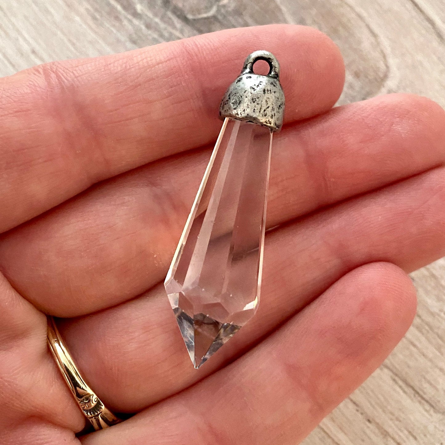 Add Chandelier Crystal Prism Drop Pendant, Clear with Silver Pewter Bead Cap, Jewelry Making Artisan Findings, PW-S014 to the cart