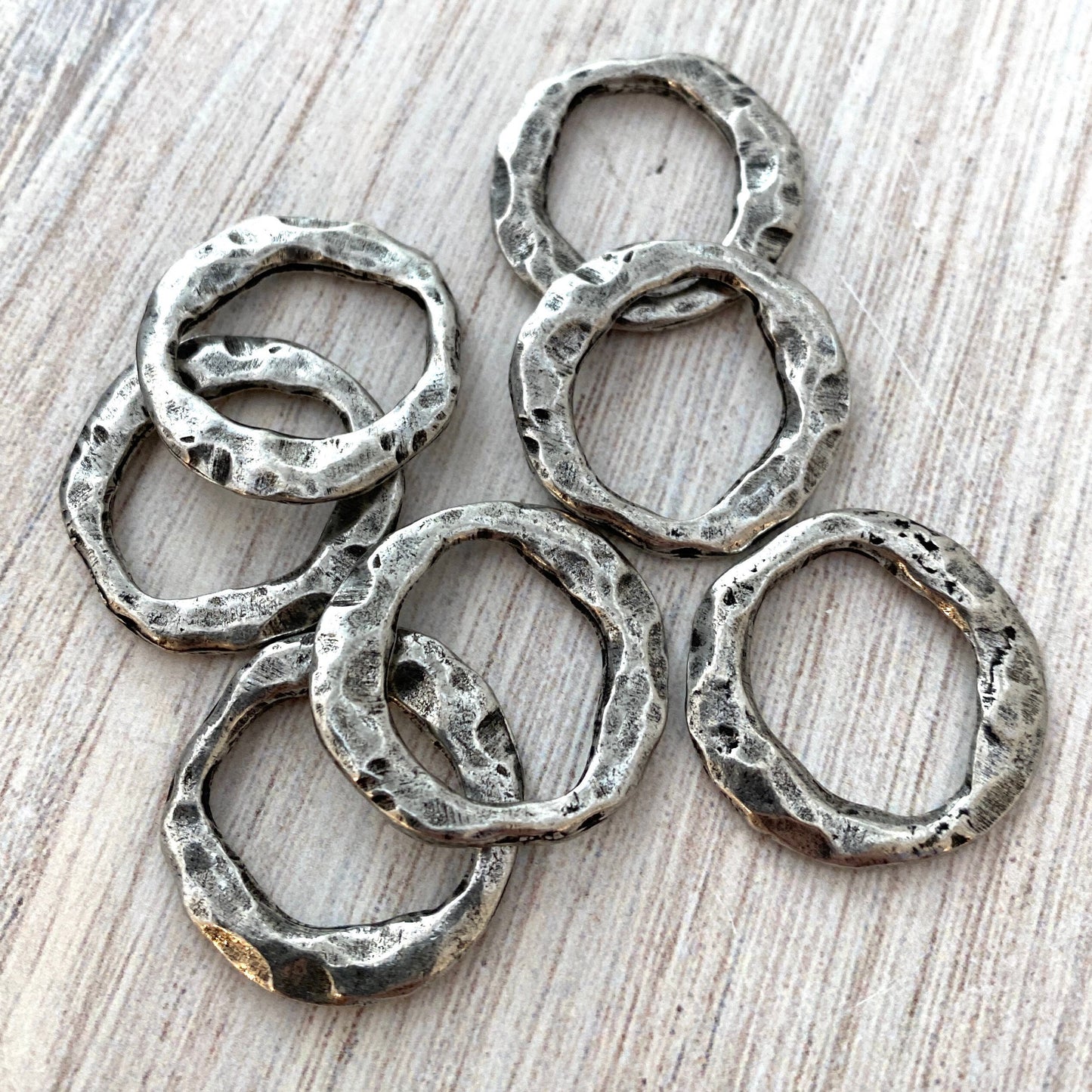 Add 2 Hammered Ring Link, Ring Connector, Eternity Ring, Leather Connector, Oval Hoop Silver Ring, Connector Circle Jewelry Supply, PW-6140 to the cart