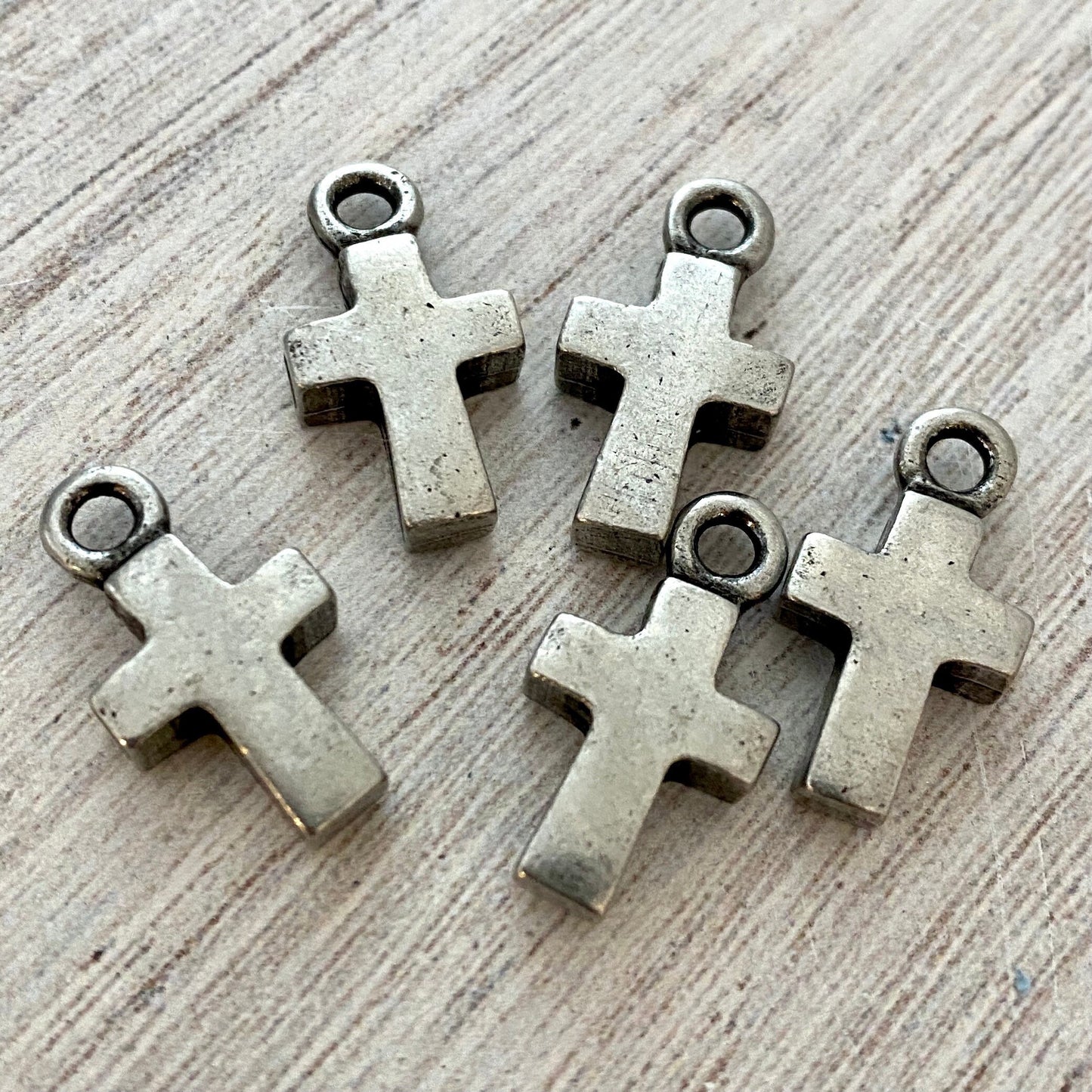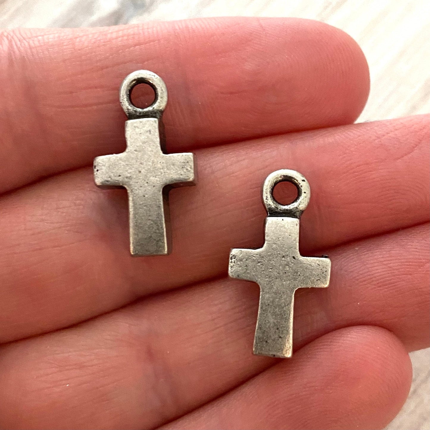 2 Cross Charm, Silver Cross for Necklace, Small Block Cross, Religious Charms, Spiritual Jewelry, Jewelry Making, Religious Jewelry, PW-6008
