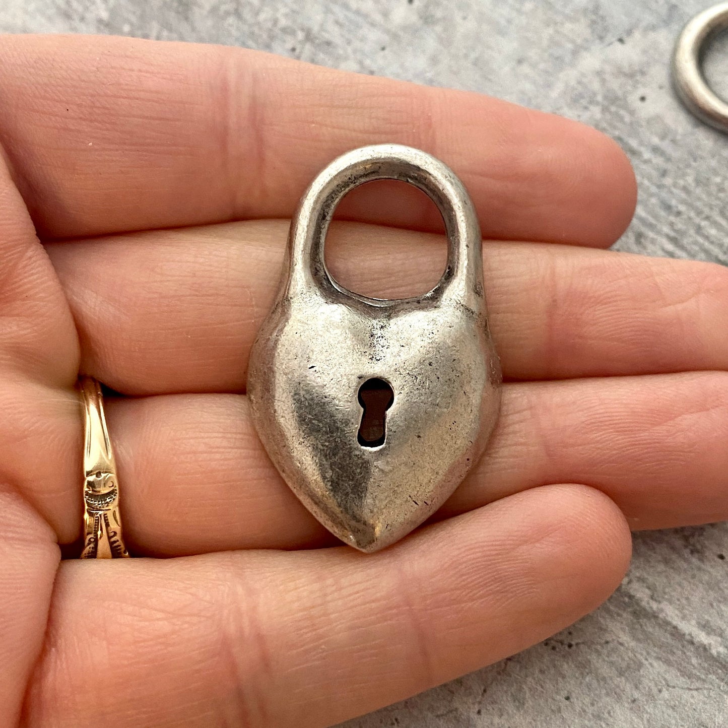 Smooth Heart Lock Pendant, Silver Charm, Jewelry Making, Carson's Cove, PW-6170