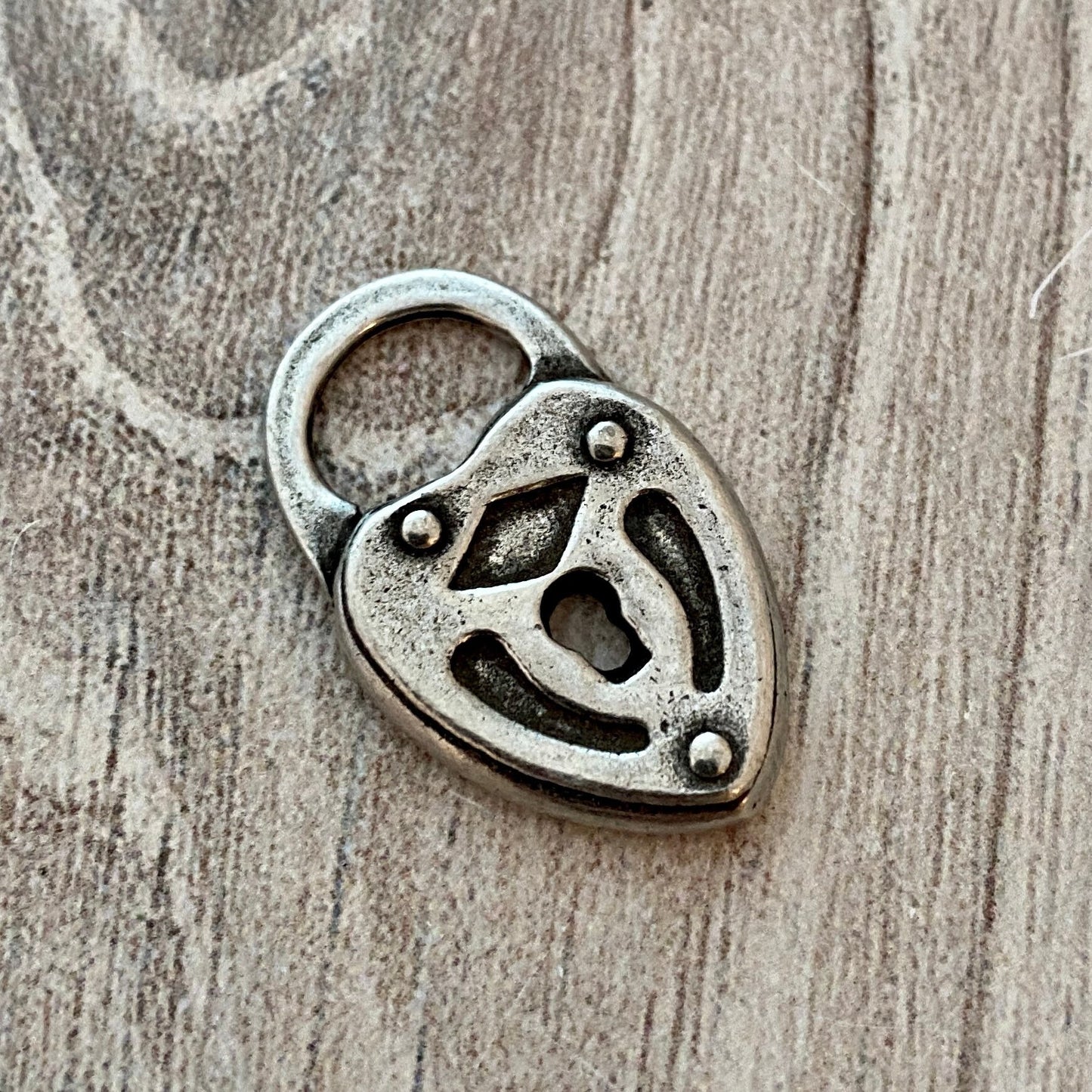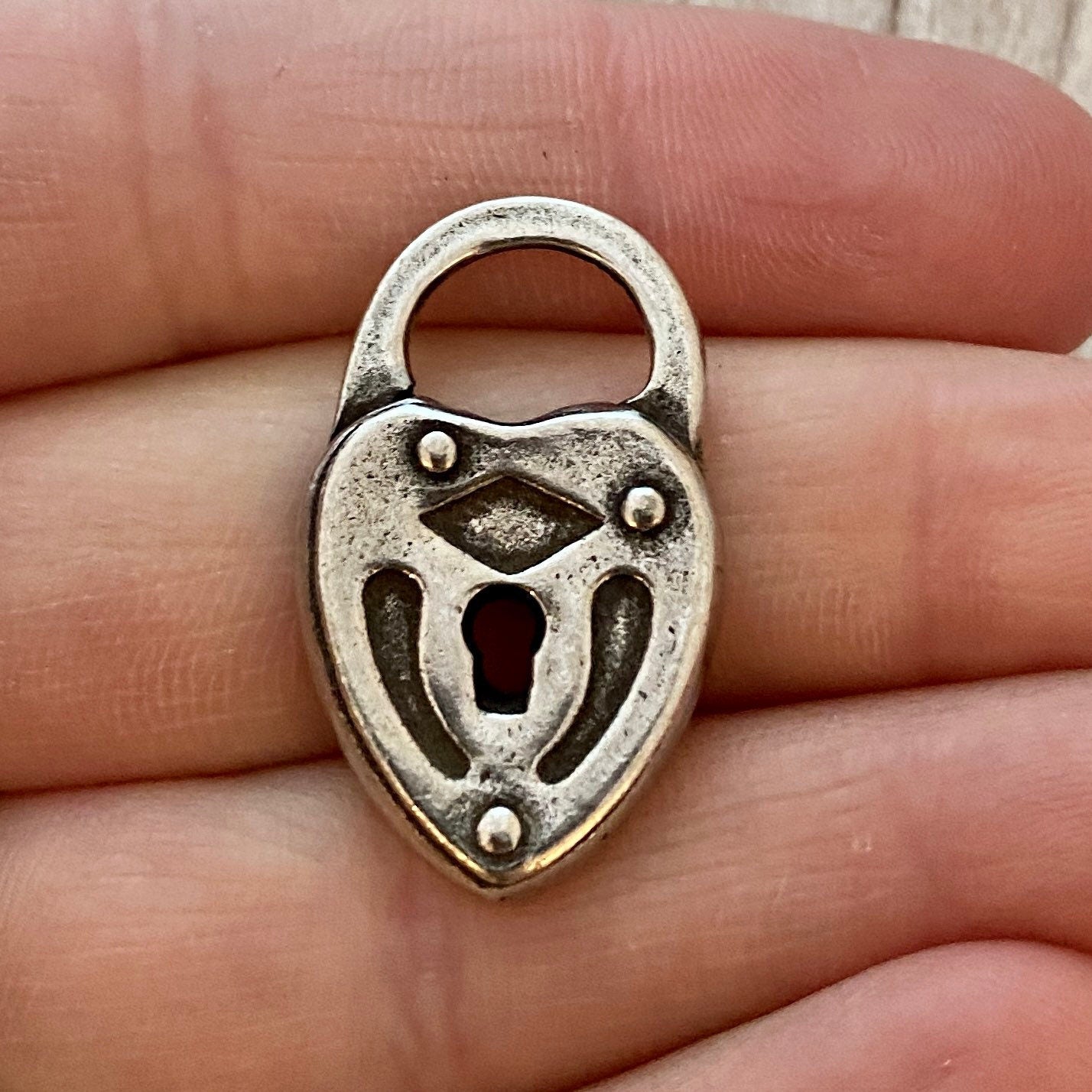 Heart Lock Charm, Silver Lock Pendant, Artisan Jewelry Supplies, Carson's Cove, PW-6184