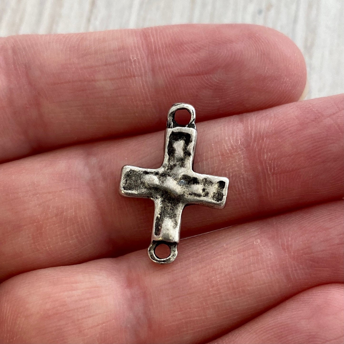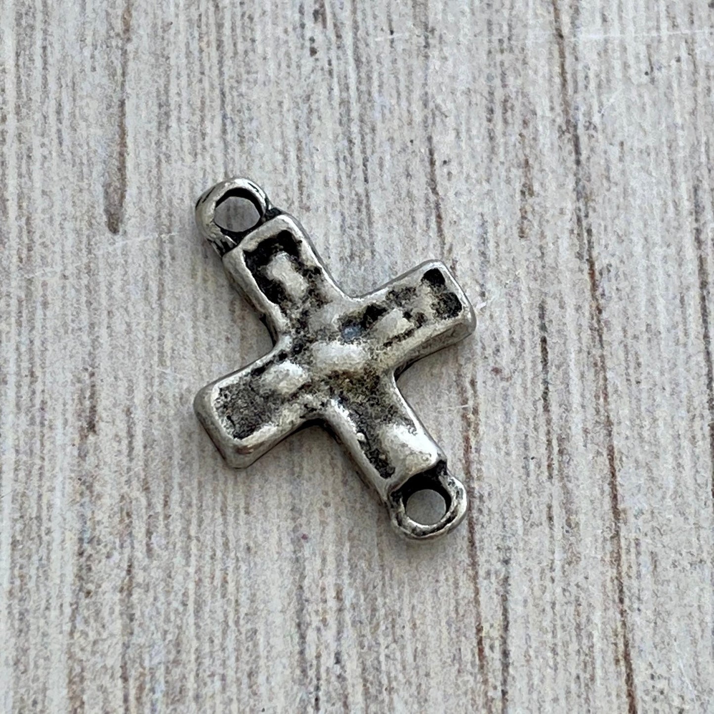 Cross Connector, Antiqued Silver Artisan Charm, Jewelry Making Supplies, PW-6201