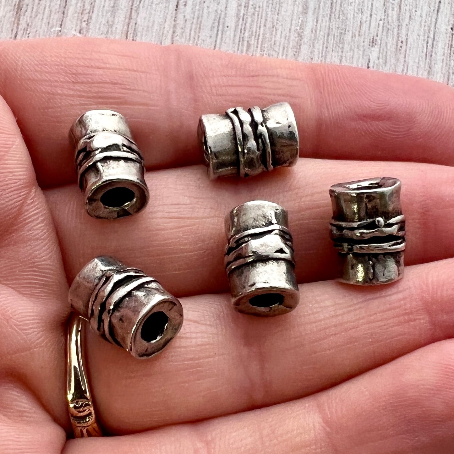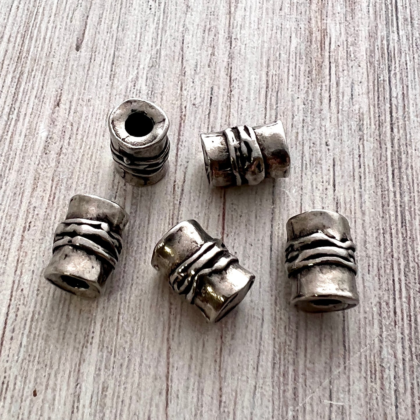 Textured Artisan Tube Bead, Antiqued Silver Finding, Jewelry Components Supplies, PW-6245