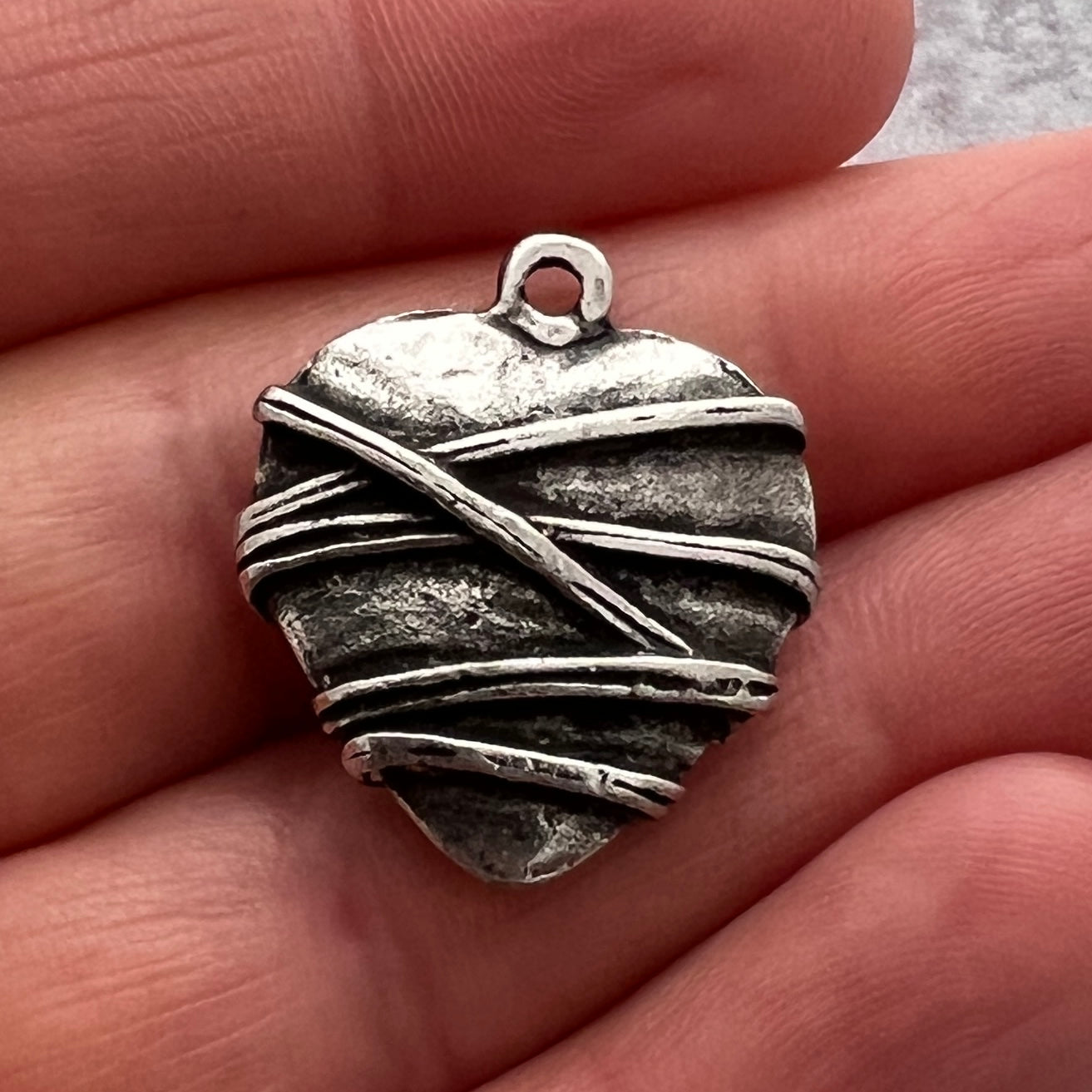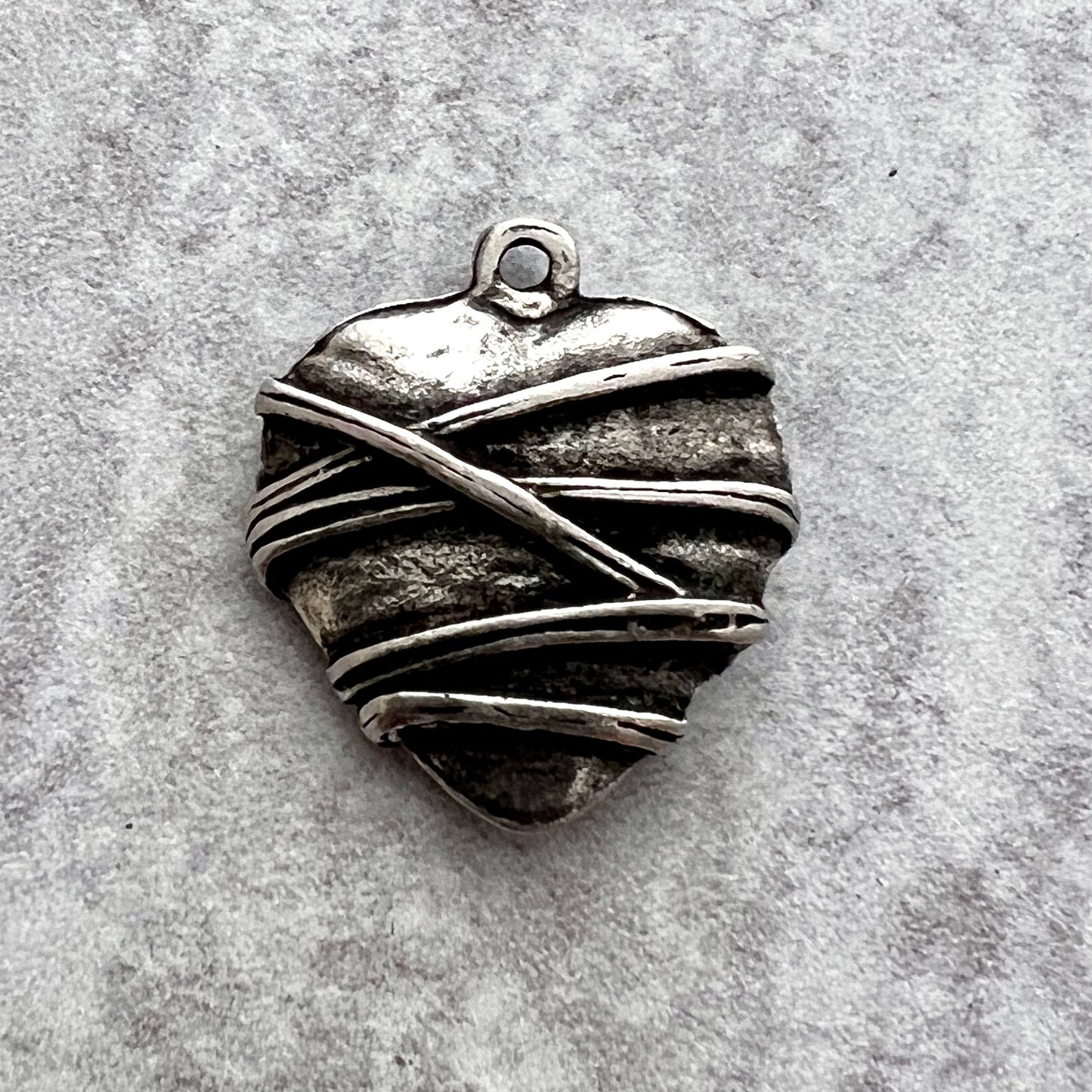 Lined Artisan Heart Pendant, Antiqued Silver Geometric Love Charm, Carson's Cove, PW-6250