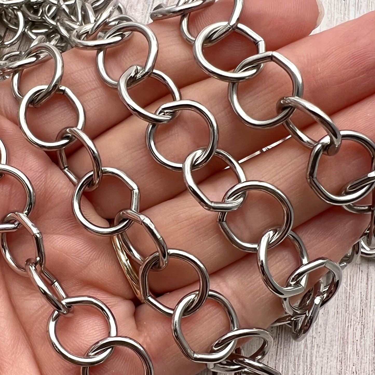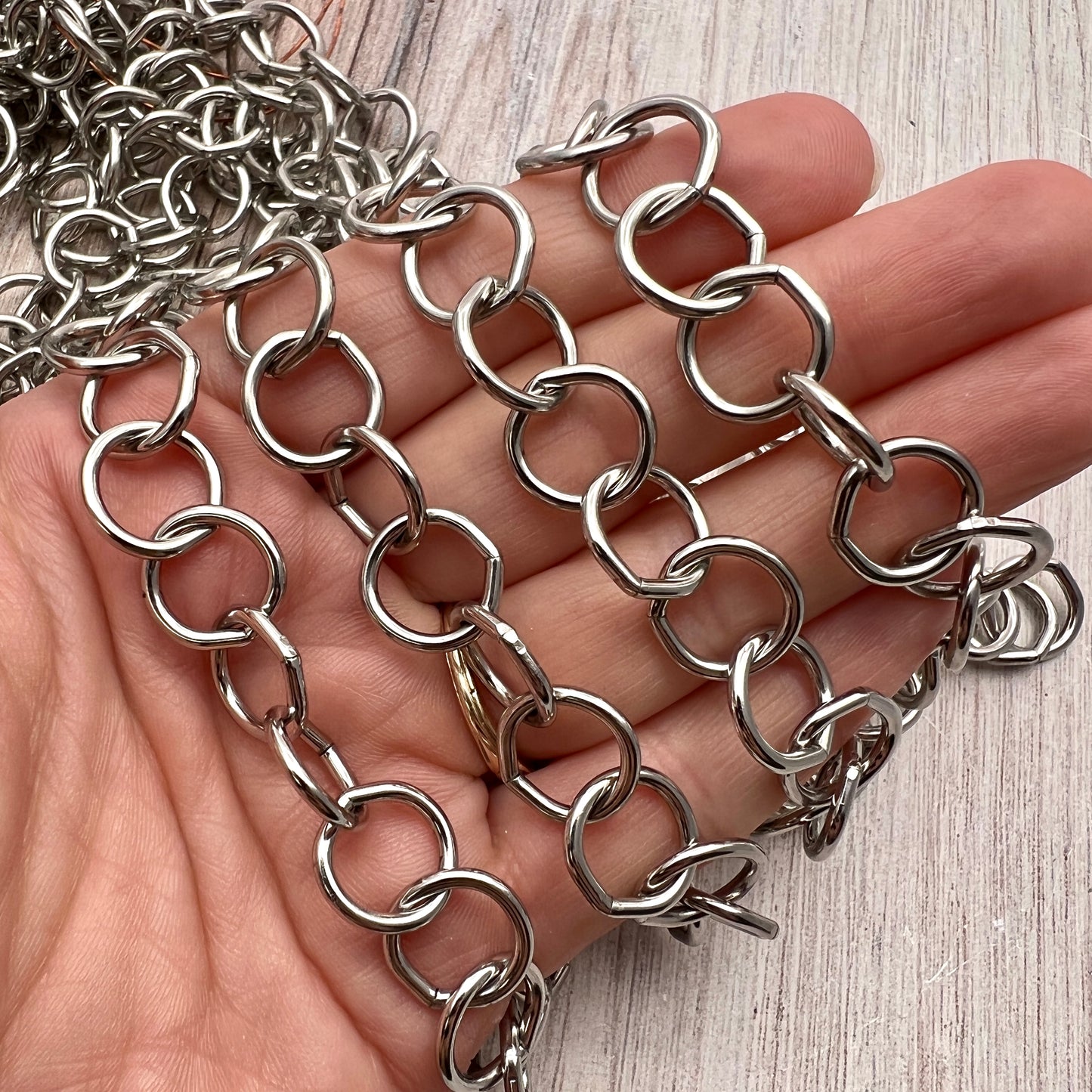 Large Smooth Chunky Chain, Circle Cable Bulk Chain By Foot, Silver Necklace Bracelet Jewelry Making PW-2043
