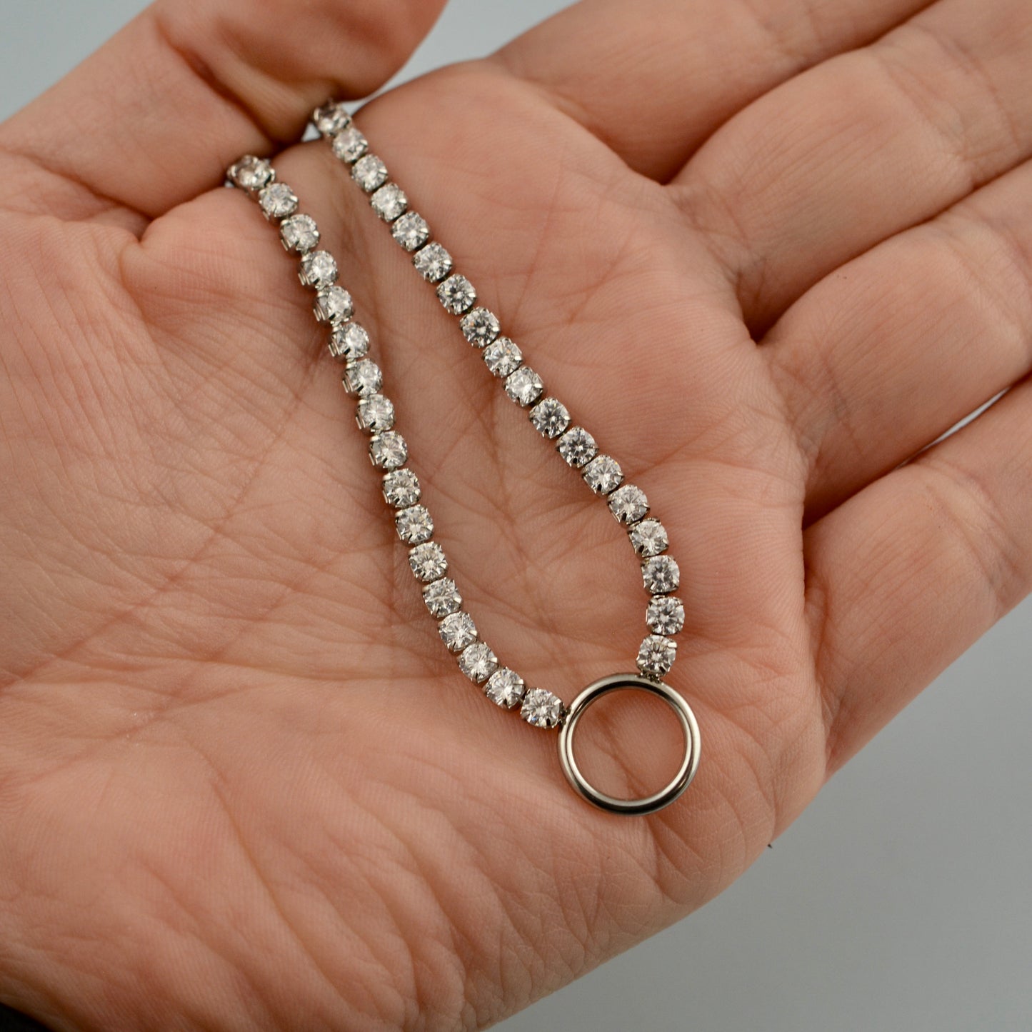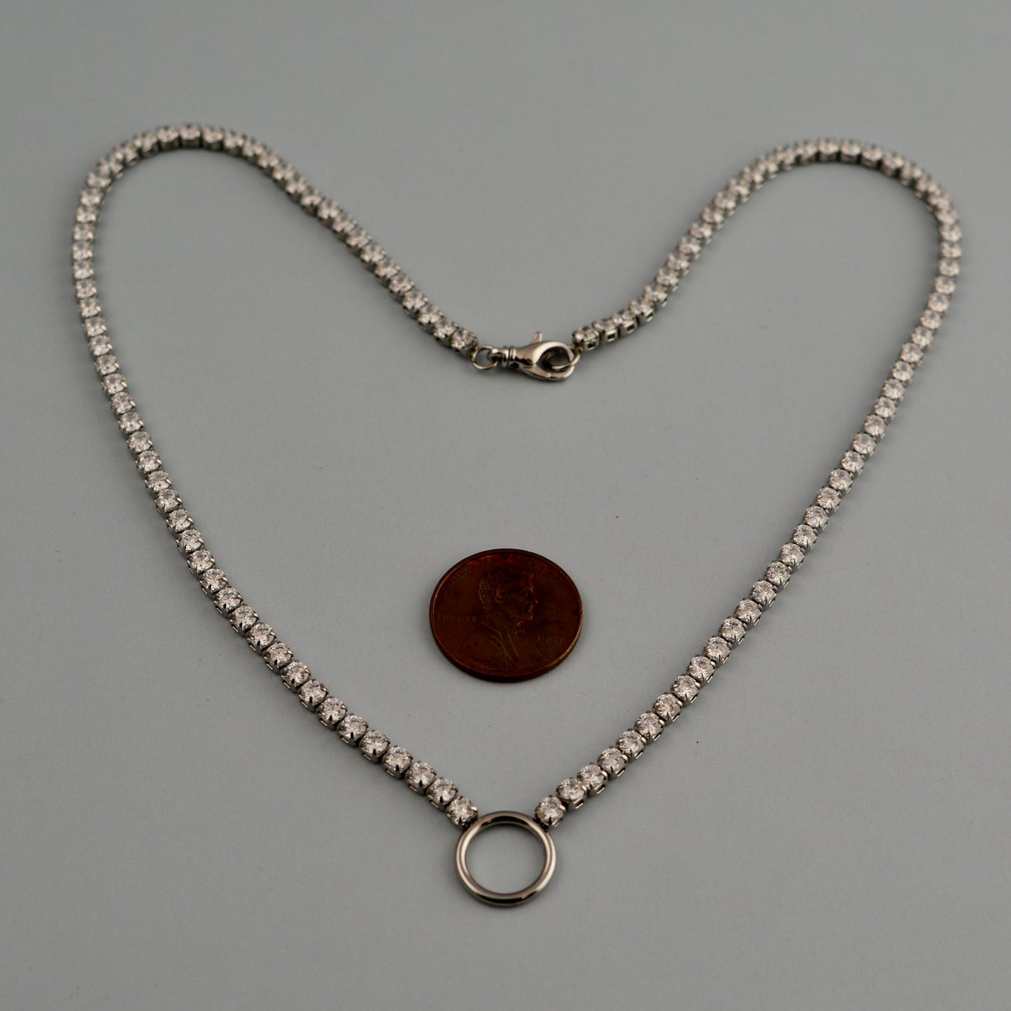 Silver Rhinestone Chain Tennis Necklace with Swivel Ring Clasp, 17 inch, Jewelry Making Supplies, PW-2076