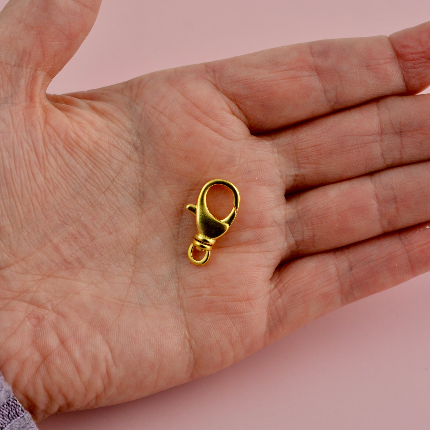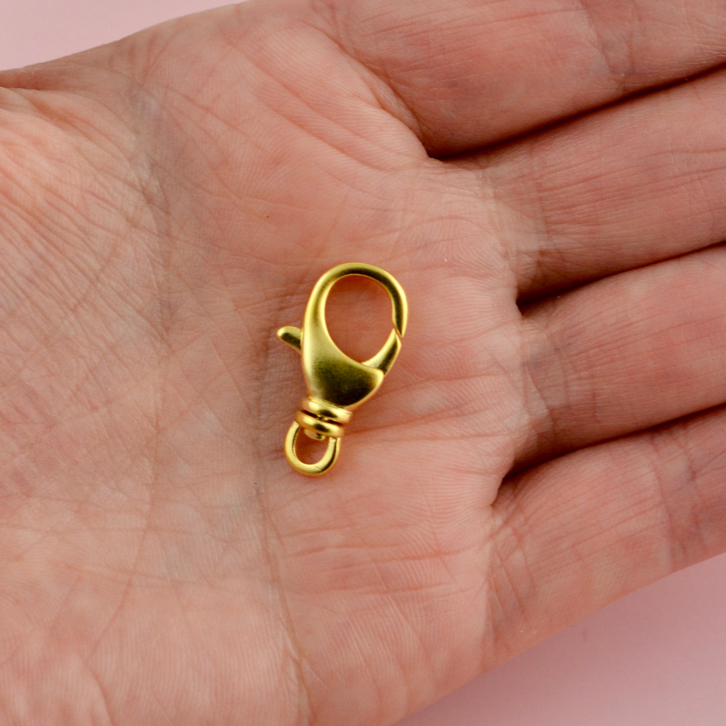This unique medium-sized lobster claw is ideal for crafting bracelets, necklaces, and more. It features a swivel ring for added flexibility. Each order includes two pieces.