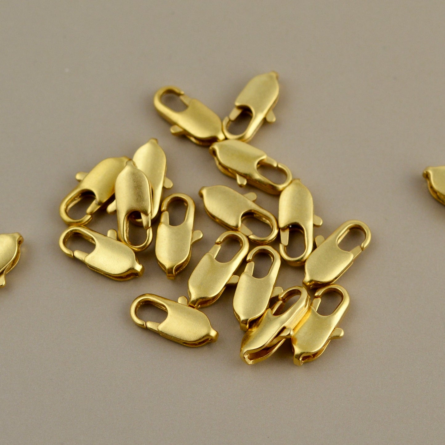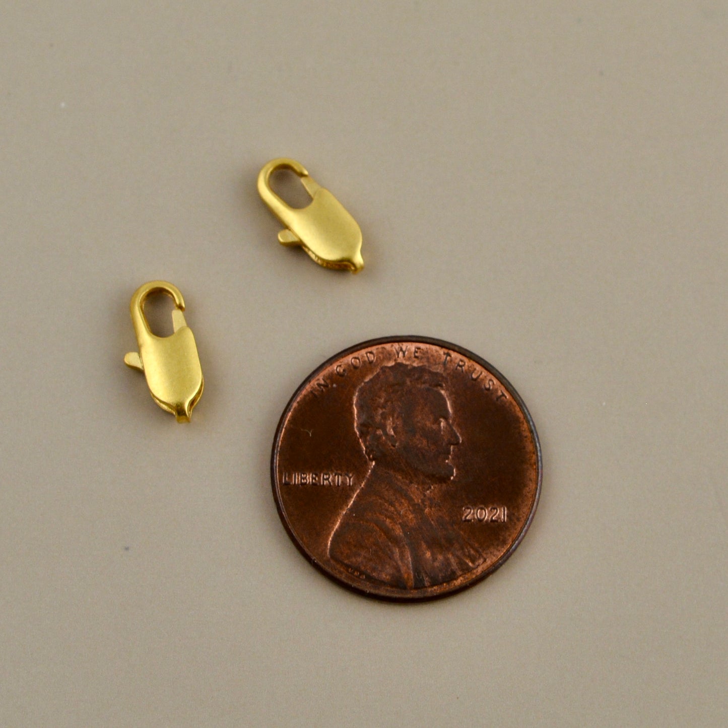 This small, thin lobster claw is refined and elegant. It looks excellent with Carson's Cove's small chains. You receive two.
