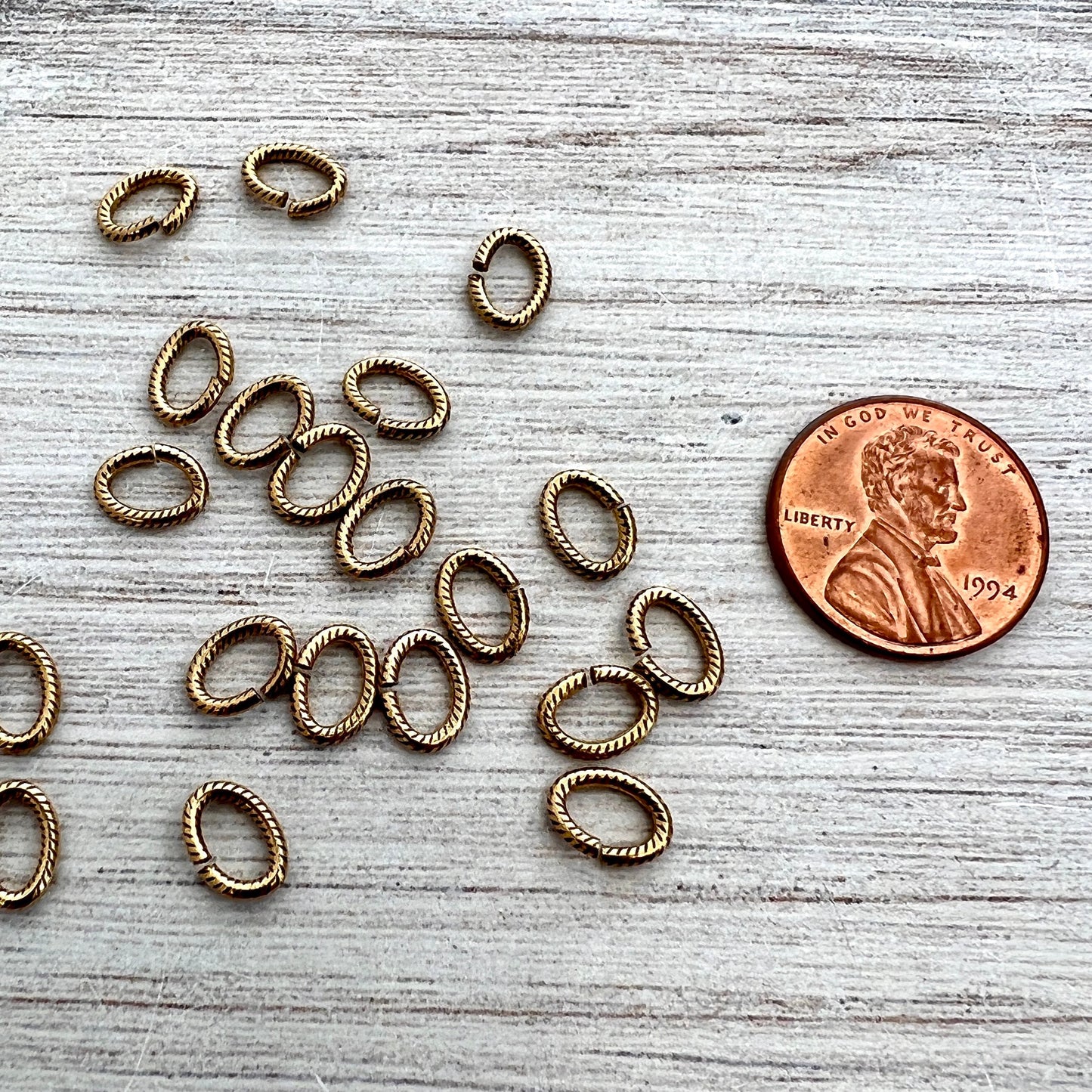 6x8mm Oval Antiqued Gold Jump Rings, Textured Brass Jump Rings, 20 rings, GL-3010