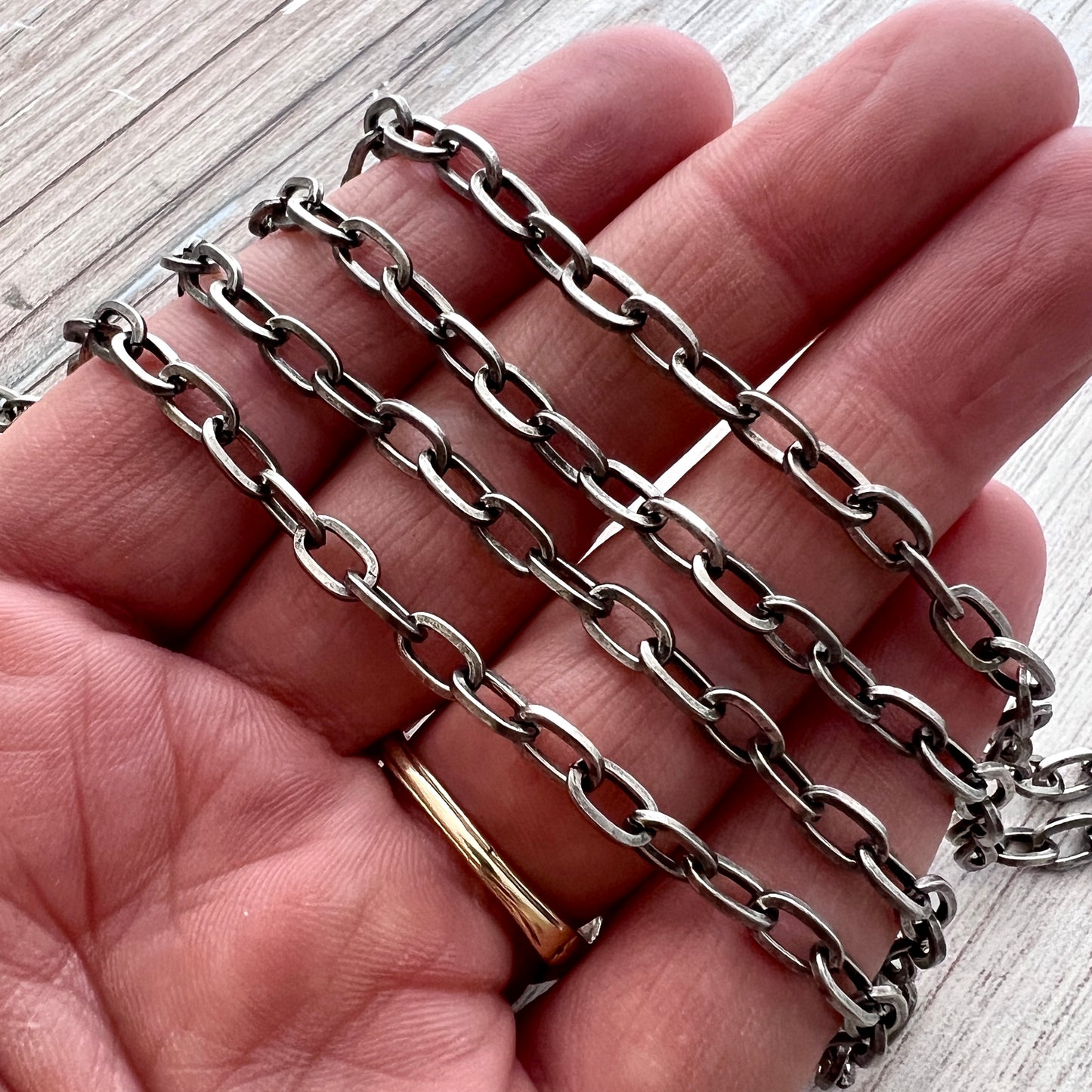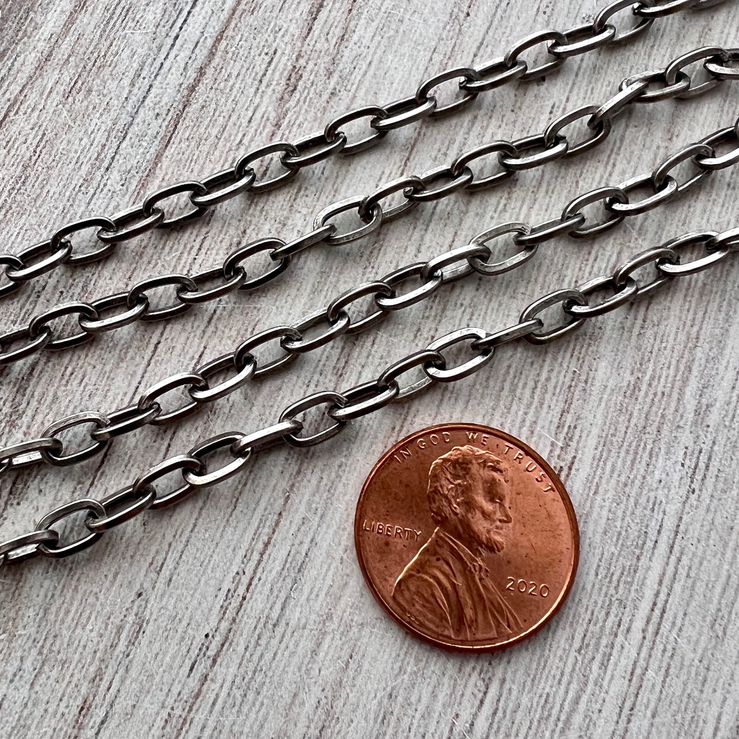 This chain has flat oval links. It's a versatile chain for all types of jewelry making.