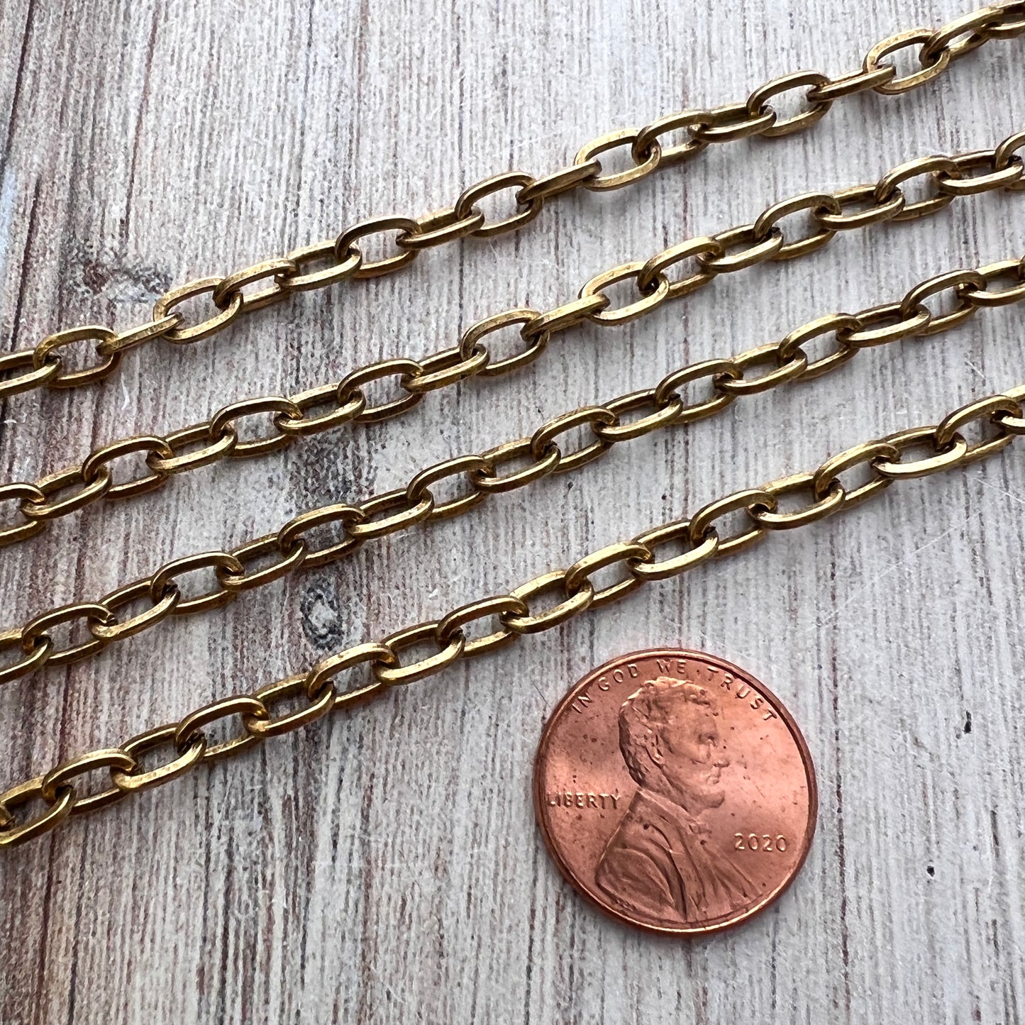 This chain has flat oval links. It's a versatile chain for all types of jewelry making.