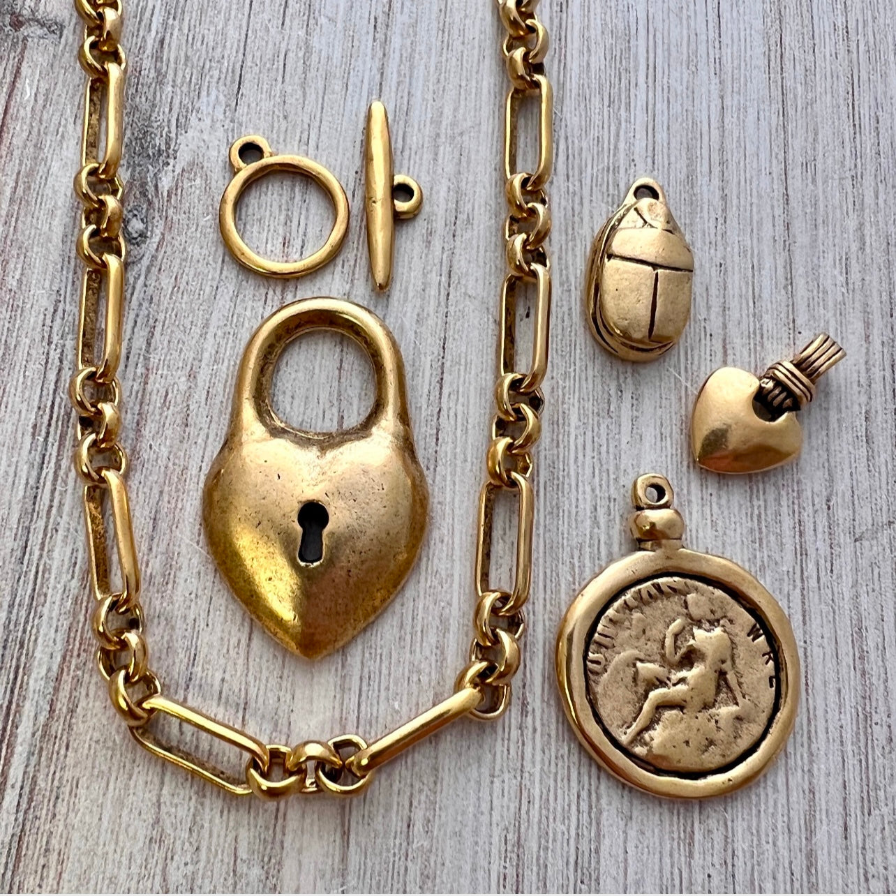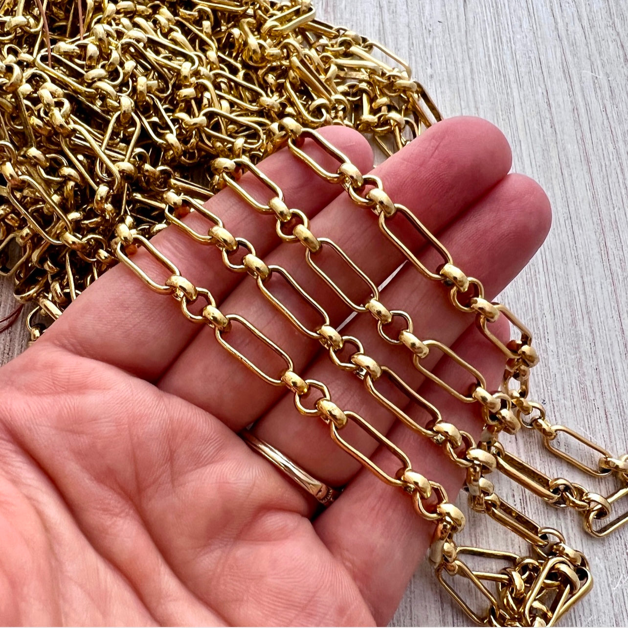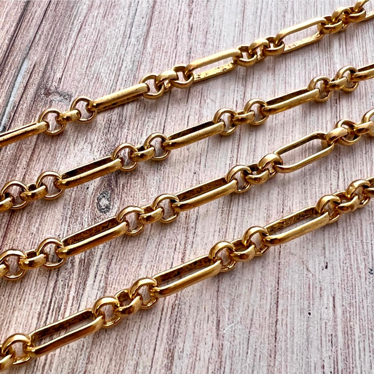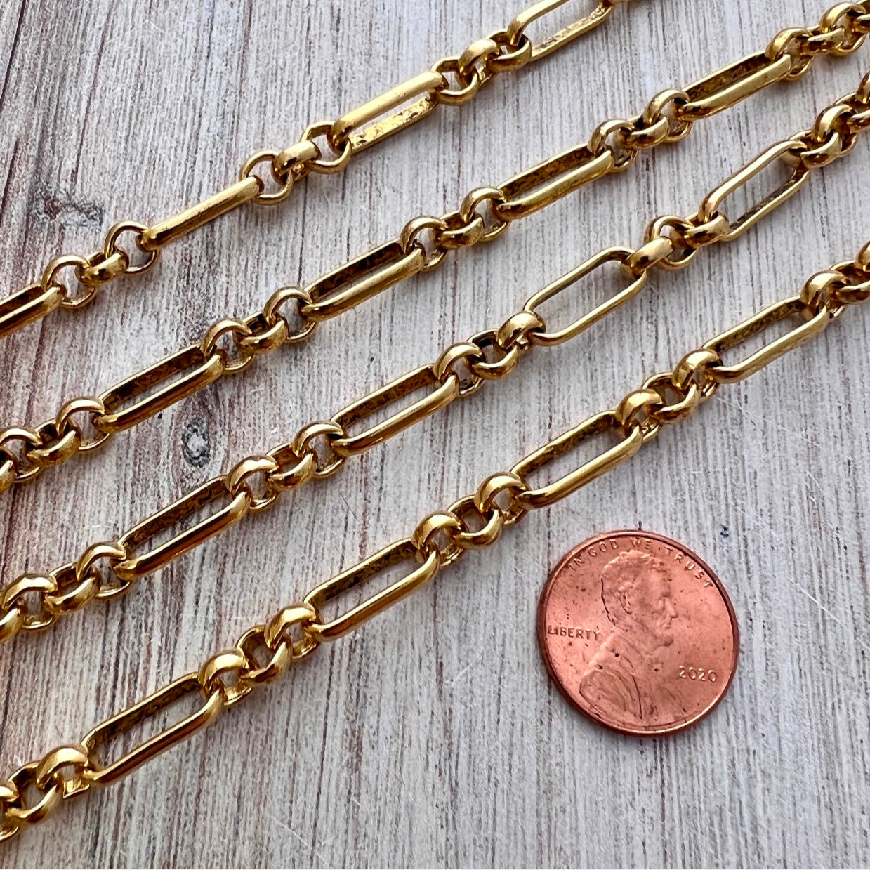 Gold Clip Chain, Alternating Long and Short Links, Chain by the Foot, Oval Cable, Jewelry Supplies, GL-2046