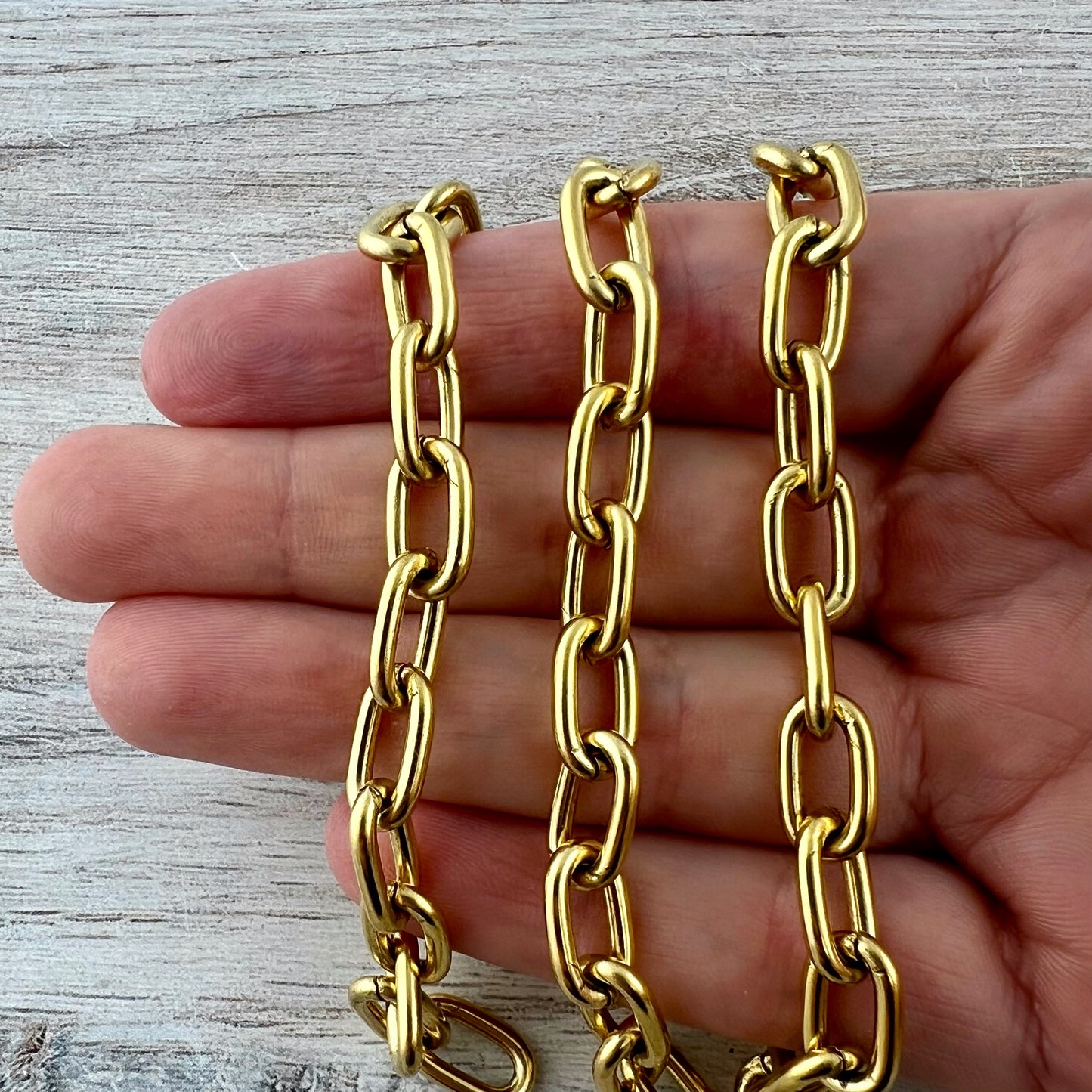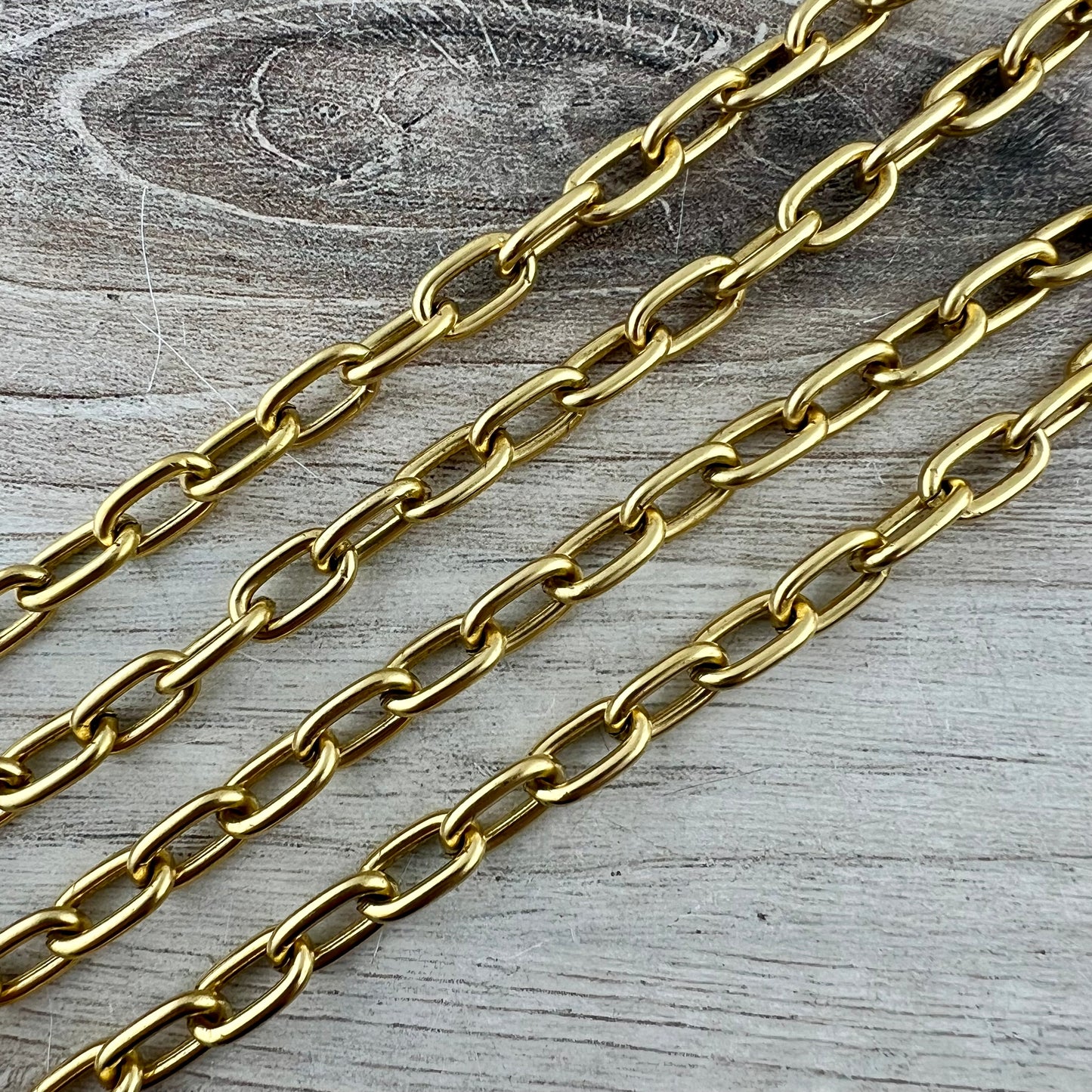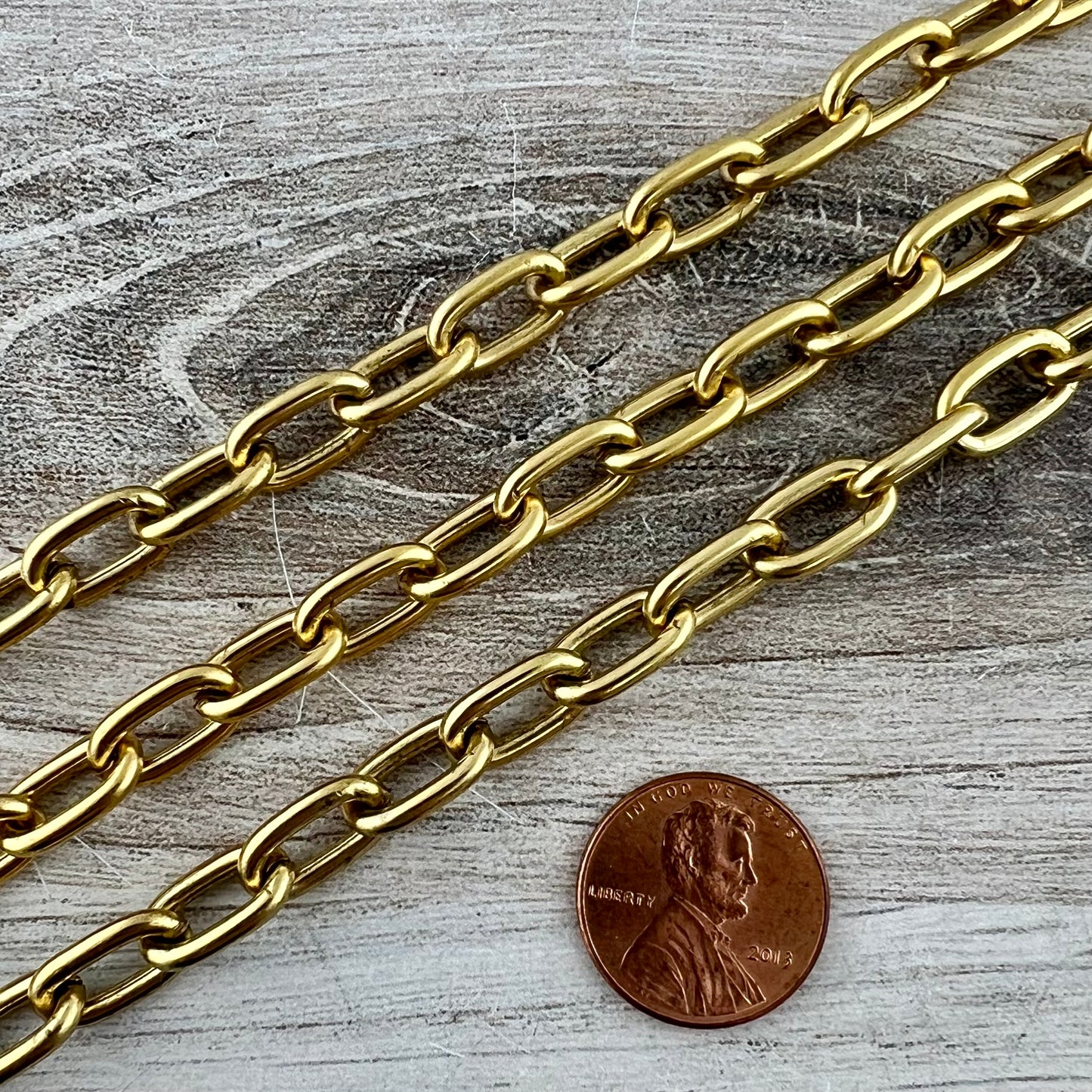 This chunky paperclip chain is thick and stylish! It can be paired with a pendant or worn alone for a bold look.. This is sold by the foot, but we ship in one continuous length unless requested otherwise.
