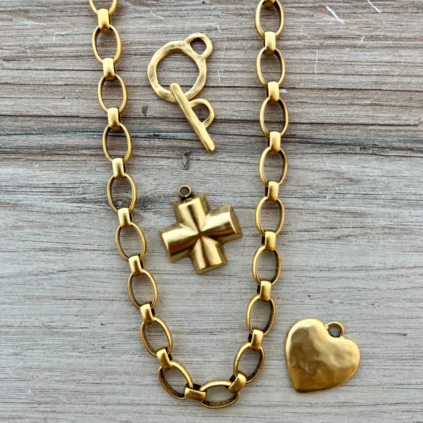 All Carson's Cove "12k Antiqued Gold" finish components are plated with real 12k gold, and then antiqued. They are all the same gold, but highly textured pieces may look a bit different than smooth pieces because the texture captures more of the antiquing elements. Why 12k gold? Because 12k gold is a light, neutral gold without an orange tone, and it looks beautiful on every skin tone!