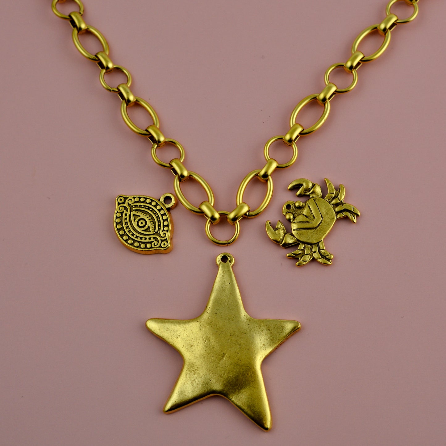 CC pewter components are made of high-quality pewter that is free of lead and cadmium. Most CC chain is made of regular steel, and some is made of brass. It is then plated with the various CC finishes. CC plating is known to hold up very well over time, but as always with any plated items, we recommend keeping it away from water and perfume.