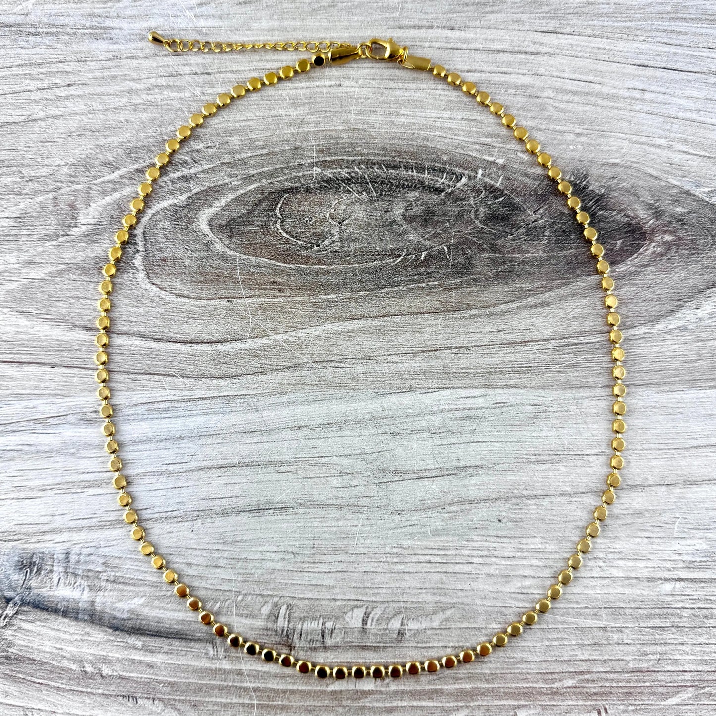 Gold Bead Ball Chain Necklace, 17 inch with 2 inch Extender, Jewelry Making Supplies, GL-2069