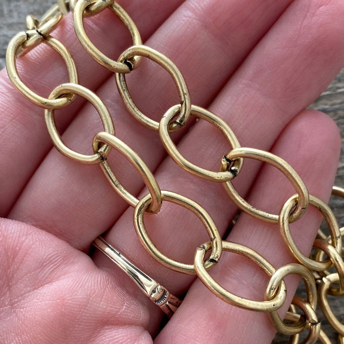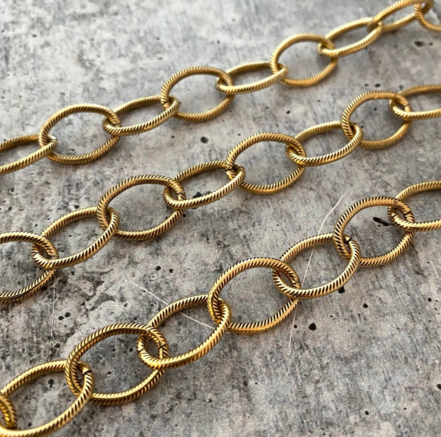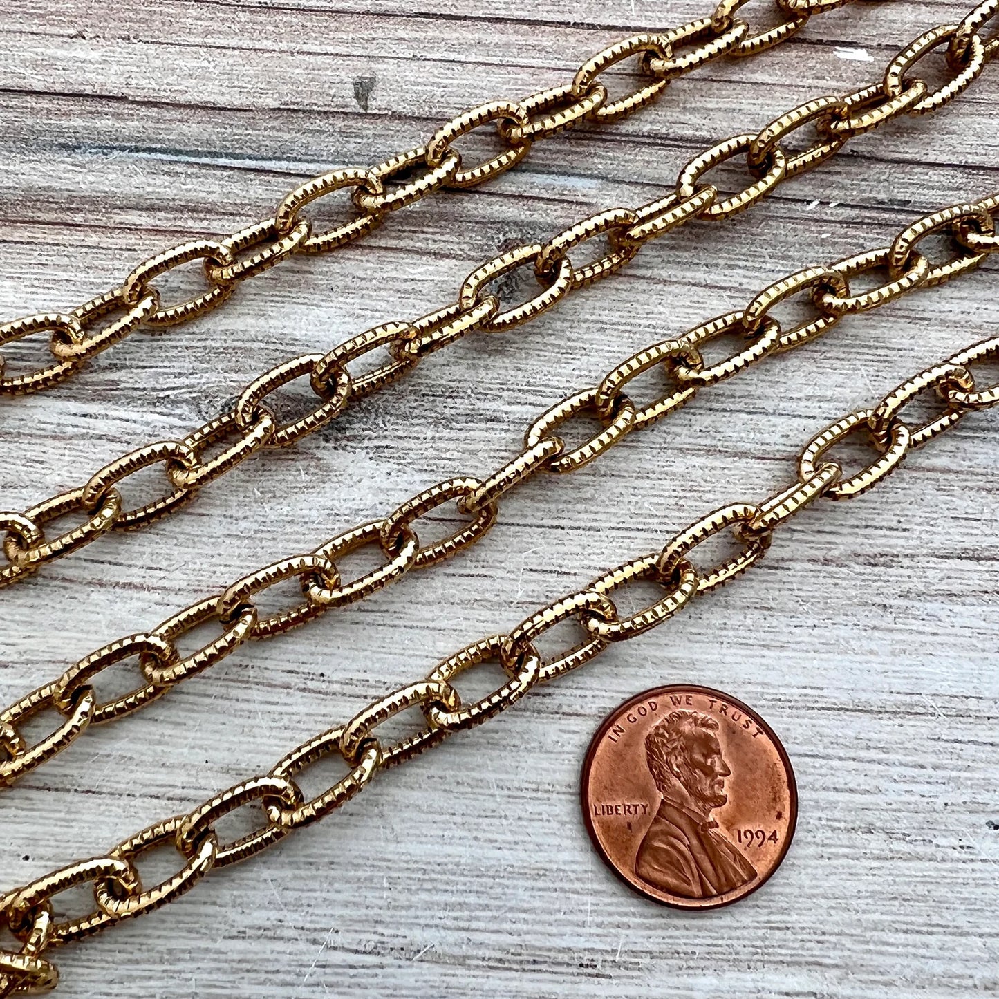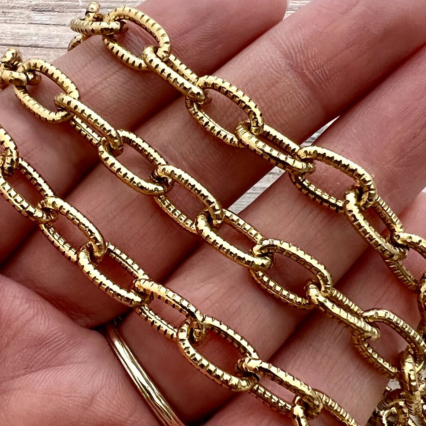Antiqued Gold Textured Etched Chain, Large Oval Cable Links, Bulk Chain By Foot, Necklace Bracelet, GL-2017