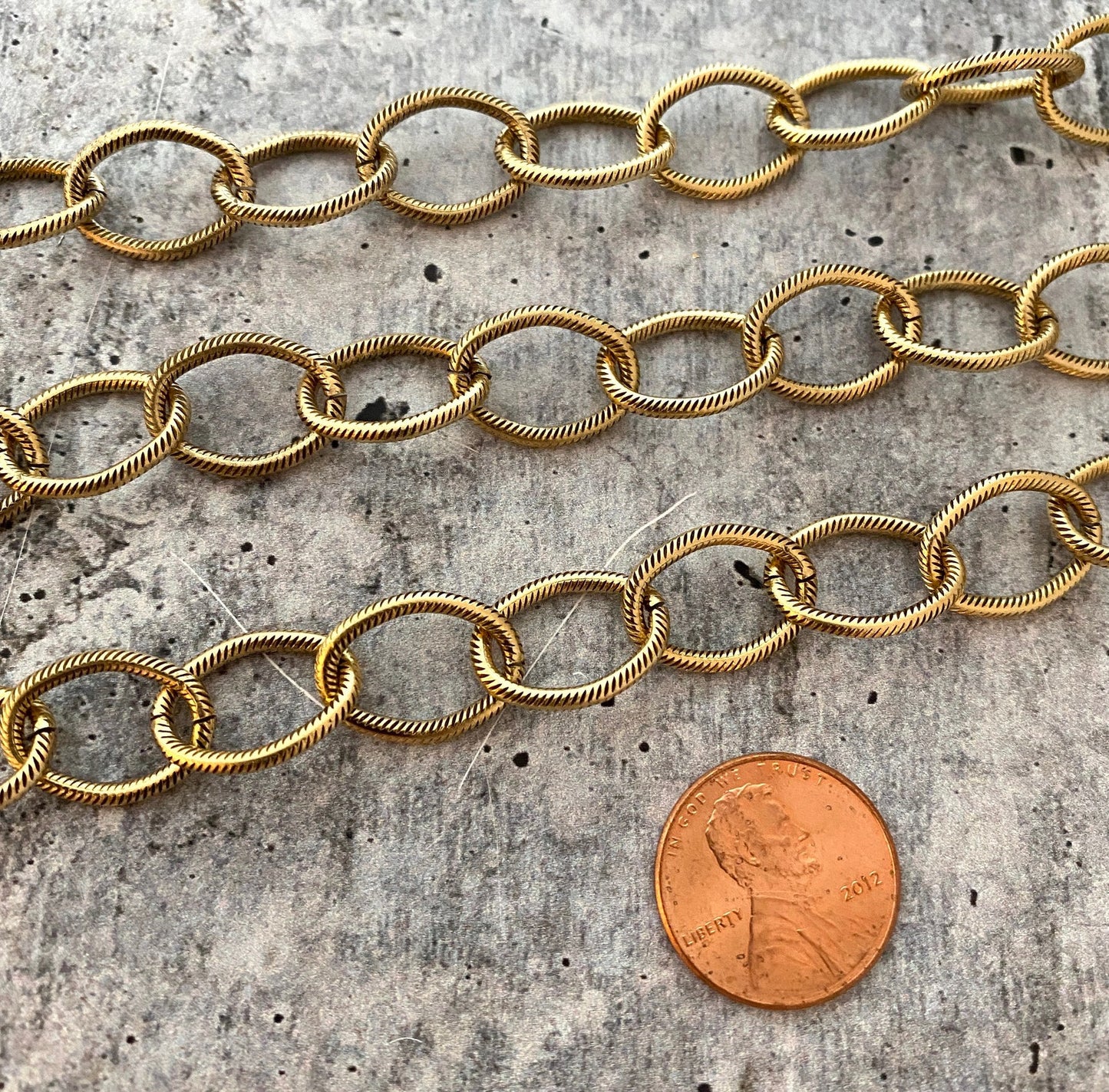 Add Antiqued Gold Textured Etched Chain, Large Oval Cable Links, Bulk Chain By Foot, Necklace Bracelet, GL-2017 to the cart