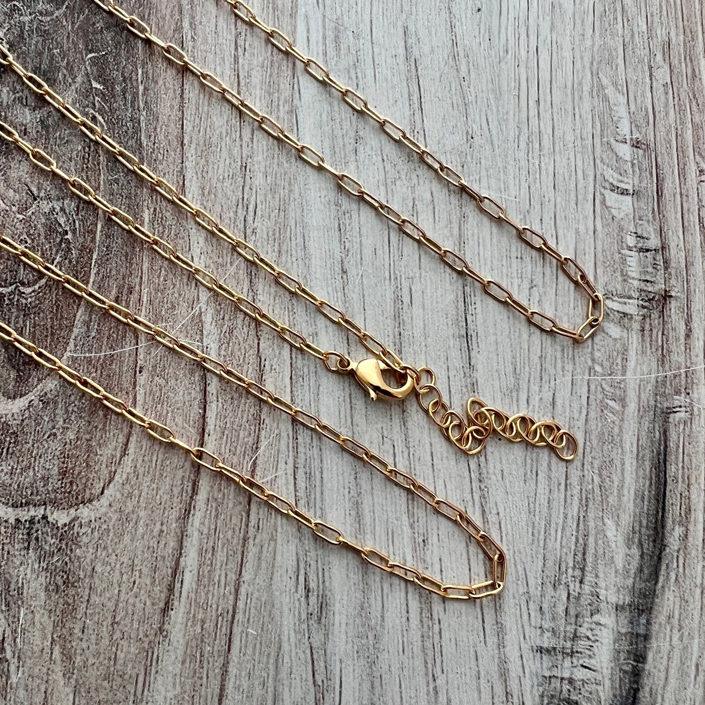 Gold Paperclip Chain Necklace, 17, 18, or 19 inch, Small Links, 17 In. with 2 inch extender, Plain Minimalist Jewelry Making, GL-2038
