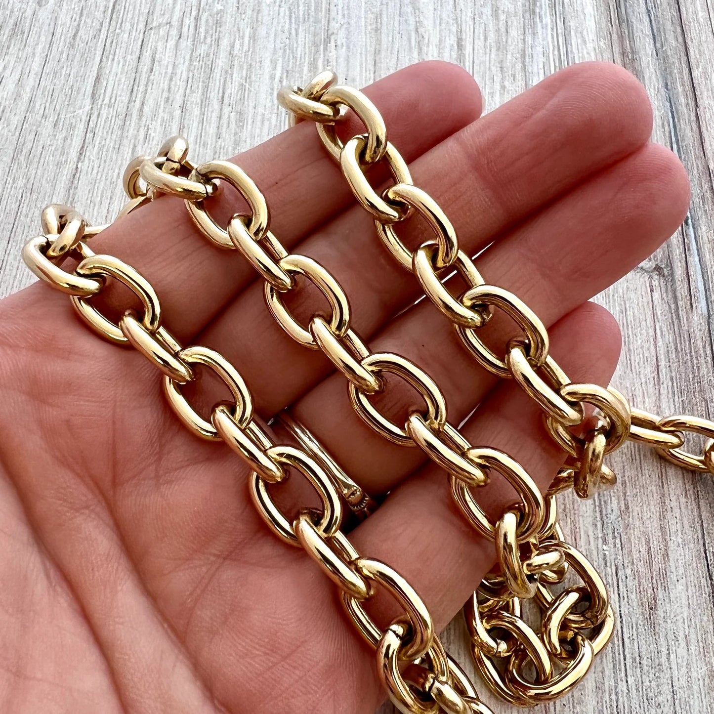 Chunky Gold Chain, Large Oval Cable Links, Bulk Chain By Foot, Necklace Bracelet Making, GL-2057