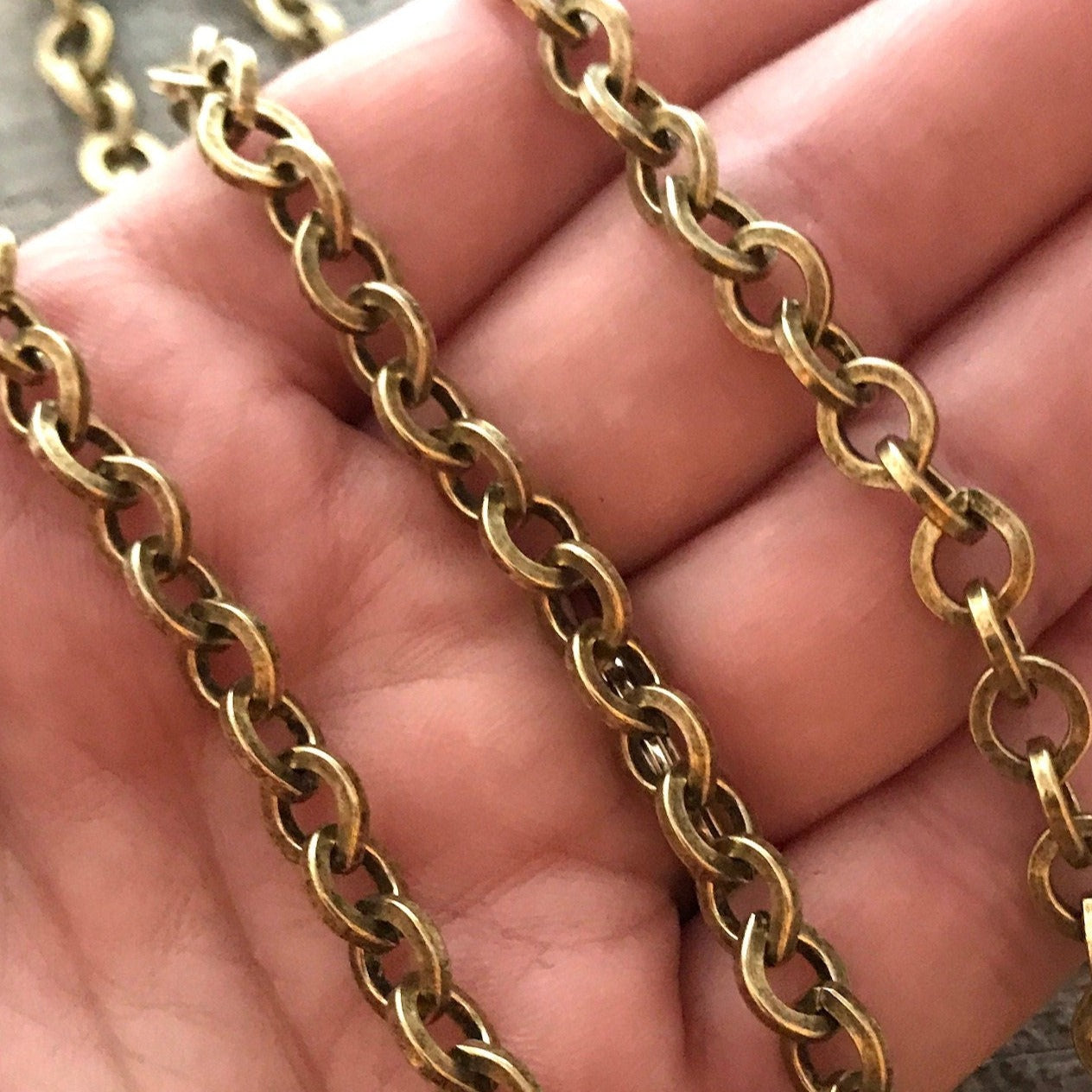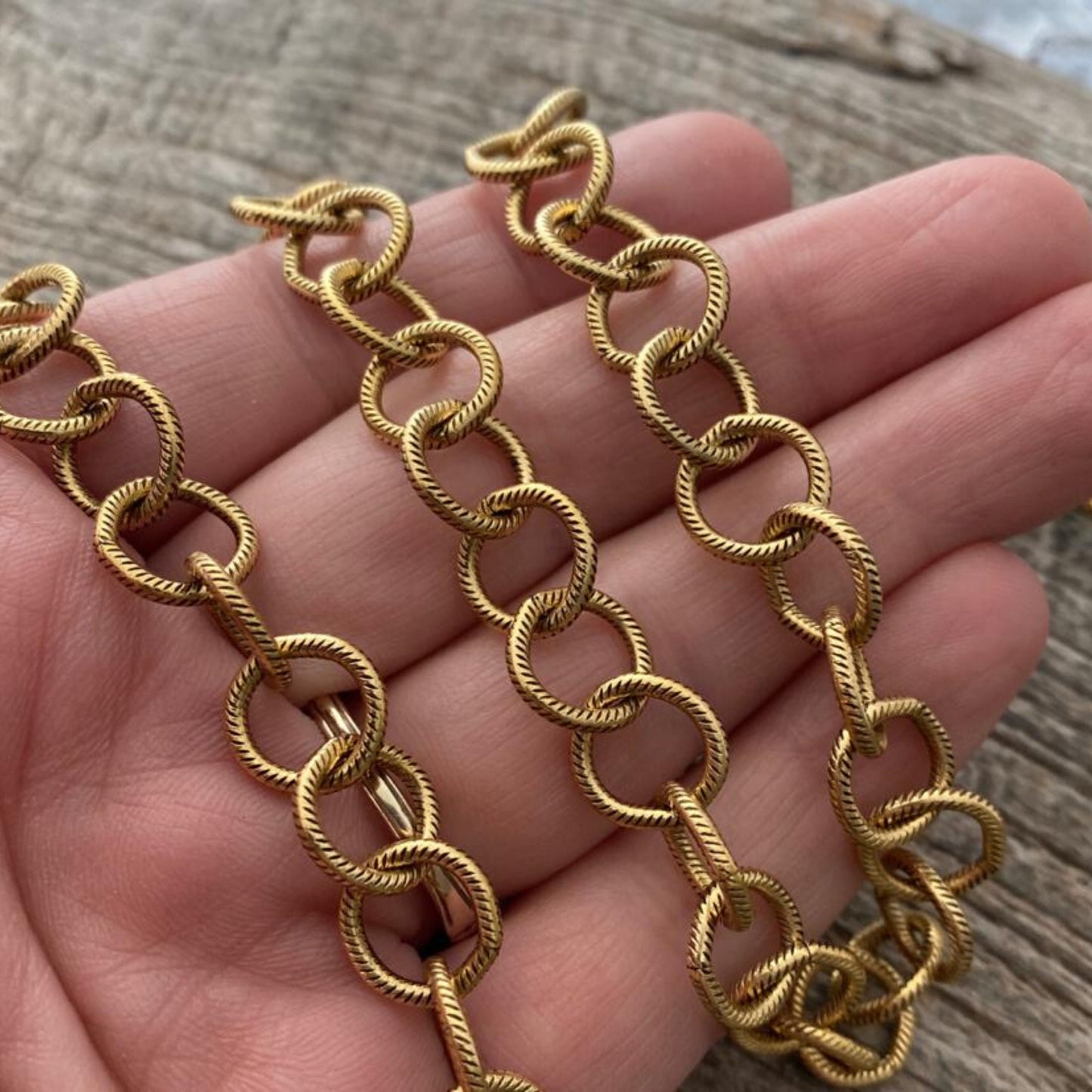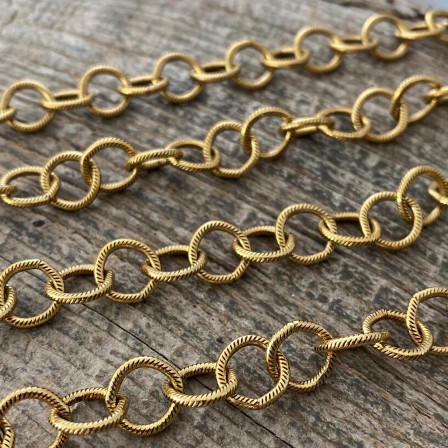 Add Large Textured Etched Chain, Circle Cable Bulk Chain By Foot, Antiqued Gold Necklace Bracelet Jewelry Making GL-2019 to the cart