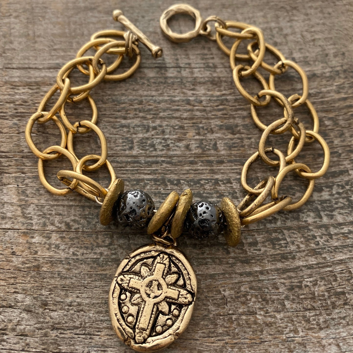 Add Medium Hammered Organic Toggle Clasp, Antiqued Gold Closure, Artisan Necklace Bracelet Findings, GL-6273 to the cart