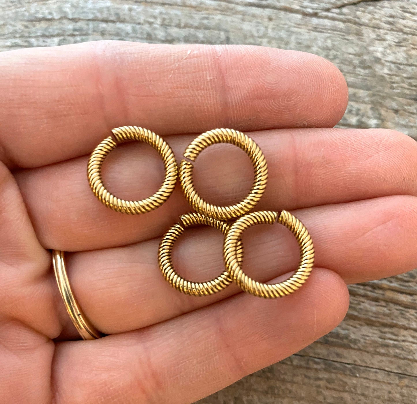 Add 14mm Extra Large Gold Jump Rings, Thick Textured Antiqued Gold Connectors, Brass Links, 4 Rings Jewelry Supply GL-3006 to the cart