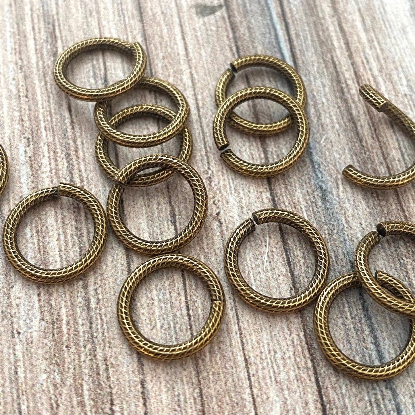 11mm Large Antiqued Gold Jump Rings, Textured Jump Ring, Brass Jump Rings, Findings, 10 rings, GL-3002