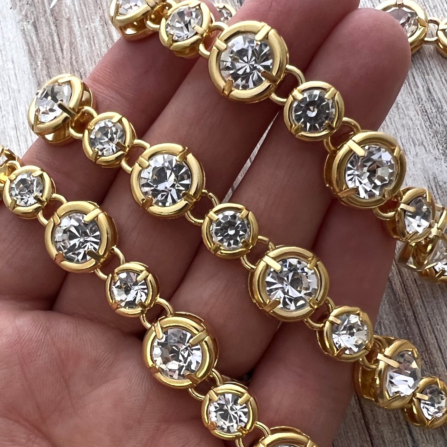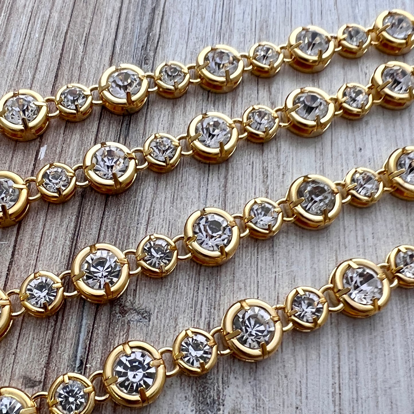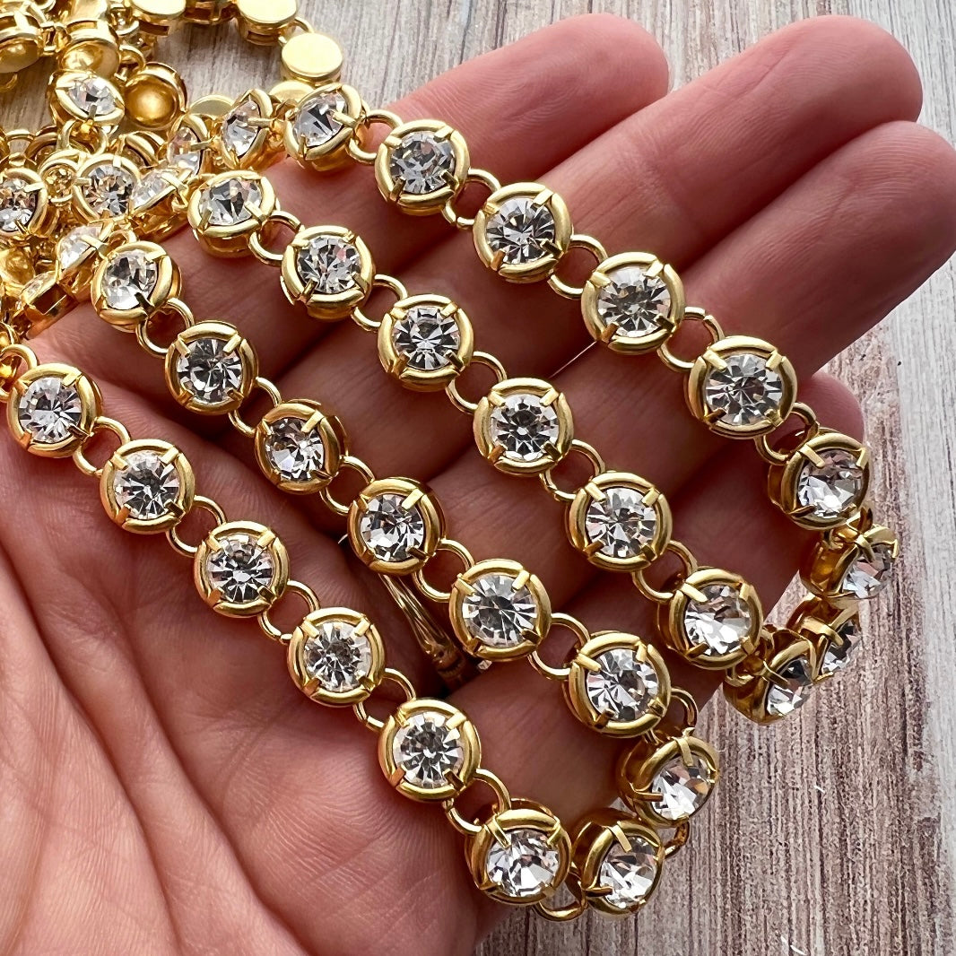 Chunky Gold Medium Sized Crystal Rhinestone Chain Chain by the Foot, Jewelry Supplies, GL-2050
